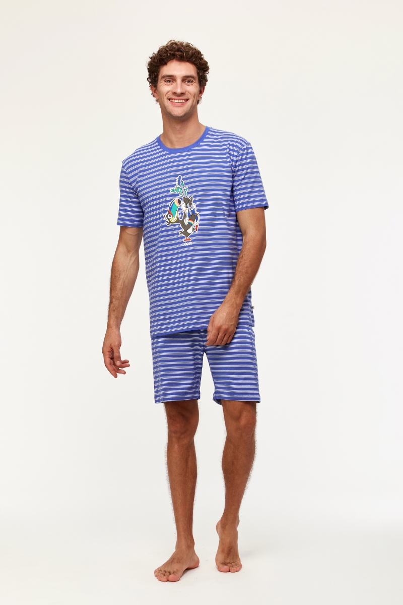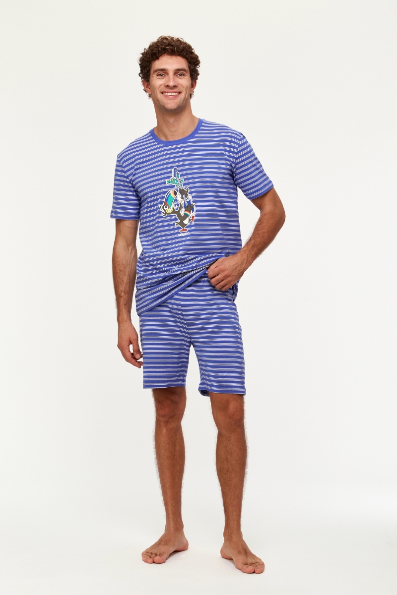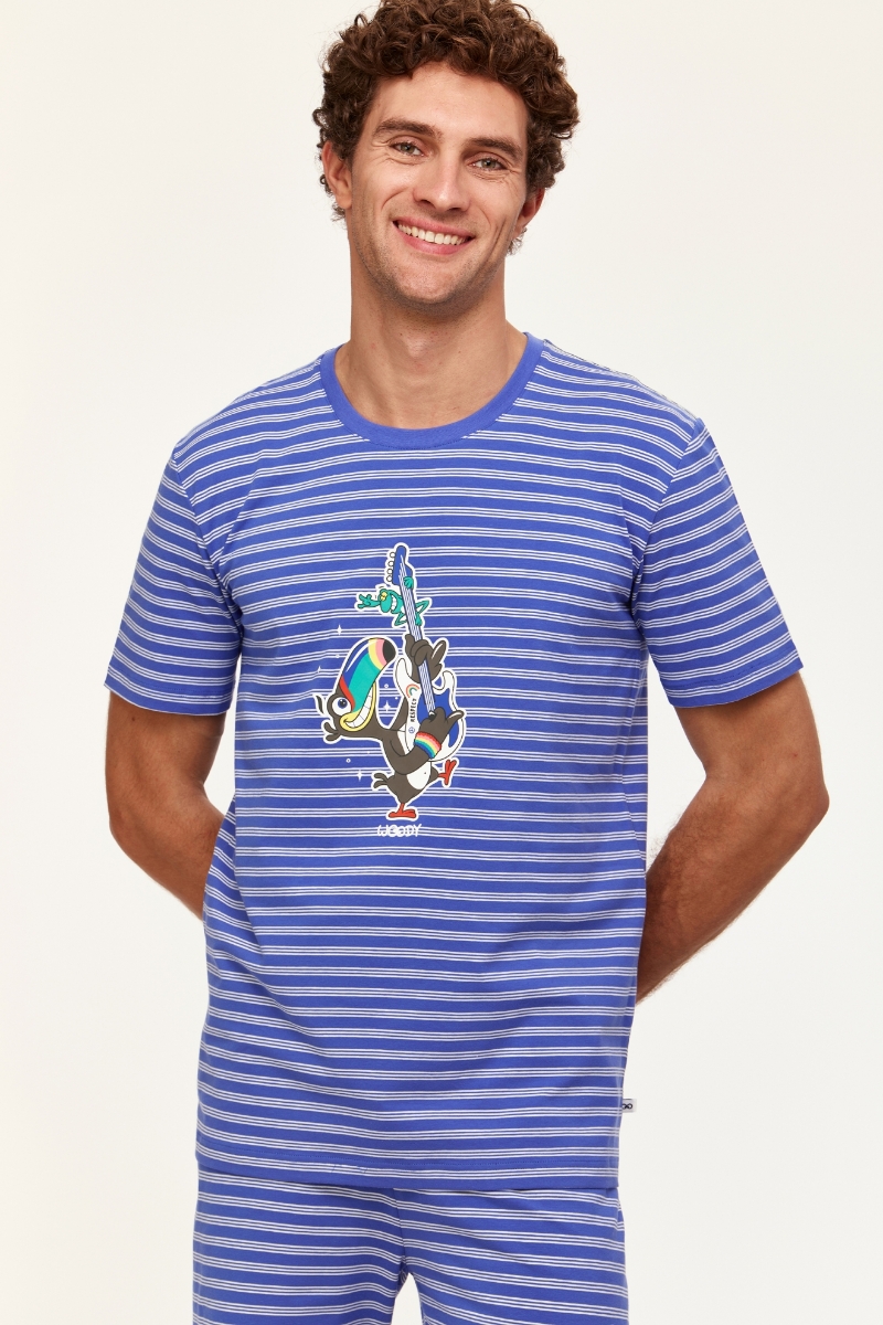 - Erkek Pijama-Pza - 915-Tukan Temalı Çizgili Ekru