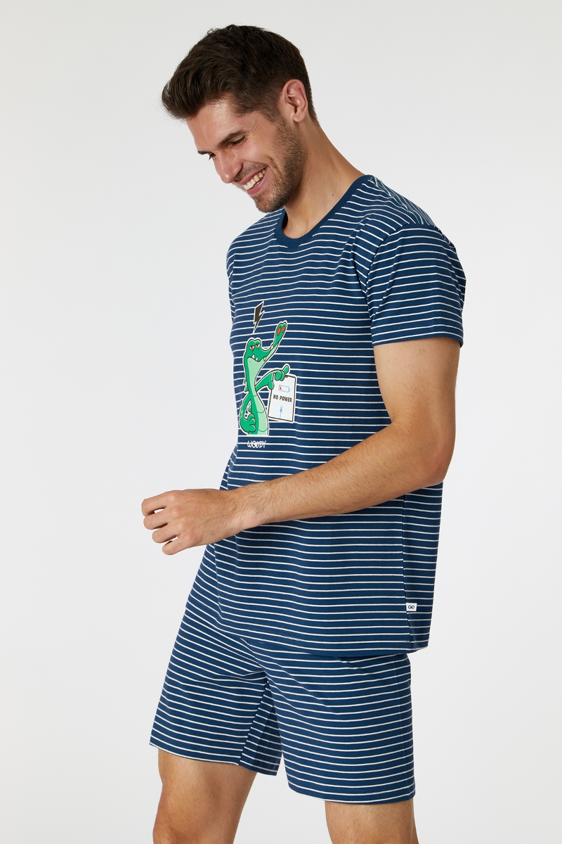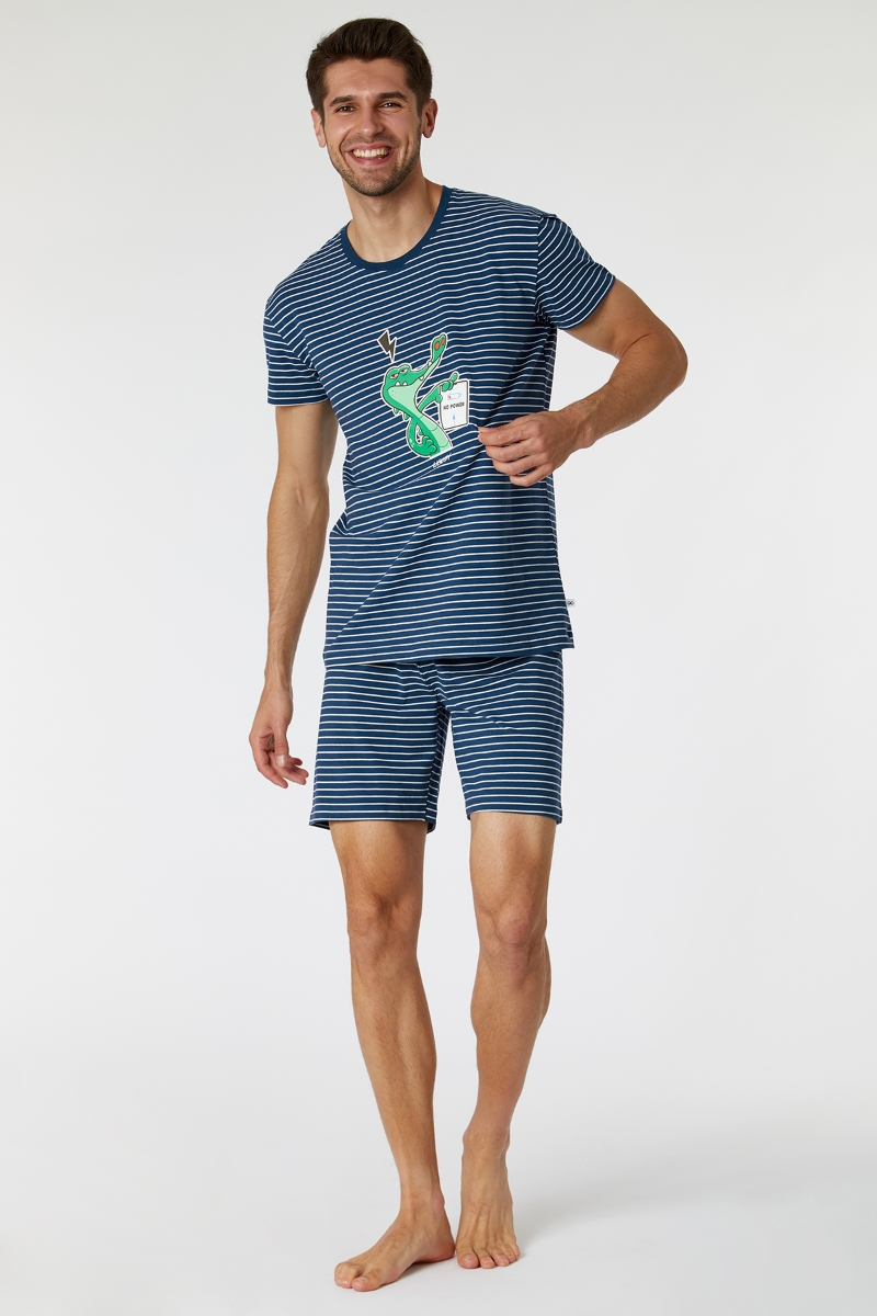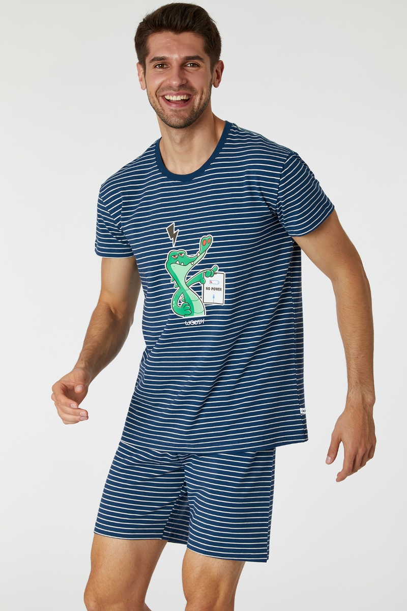 - Erkek Pijama-Pza - 981-Krokodil Temalı Lacivert Çizgili