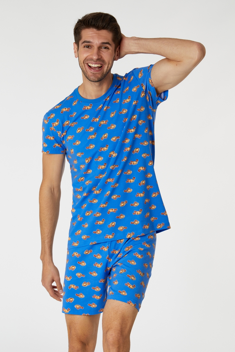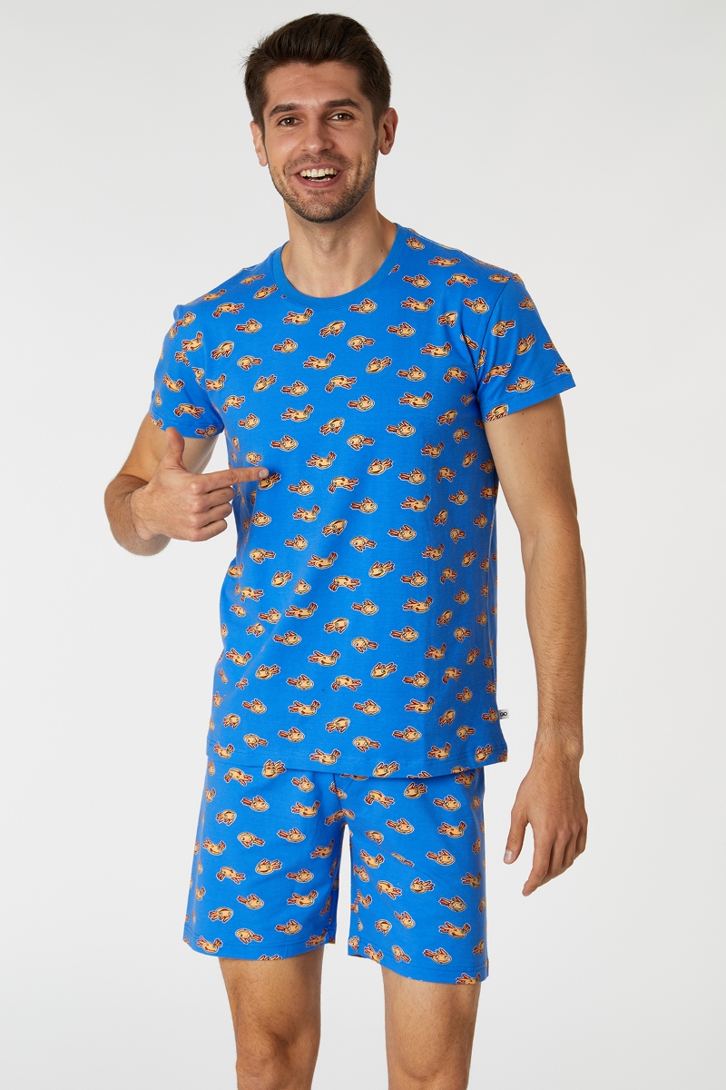 - Erkek Pijama-Pza - 982-Semender Baskılı Mavi