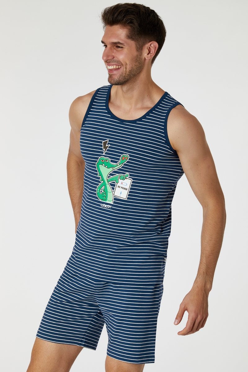 - Erkek Pijama-Pzc - 981-Krokodil Temalı Lacivert Çizgili