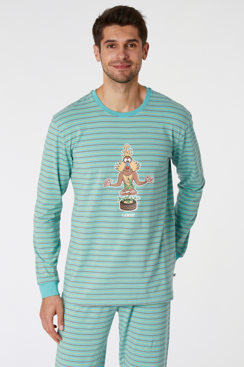- Erkek Pijama-Pzl - 978-Mandril Temalı Çizgili Yeşil