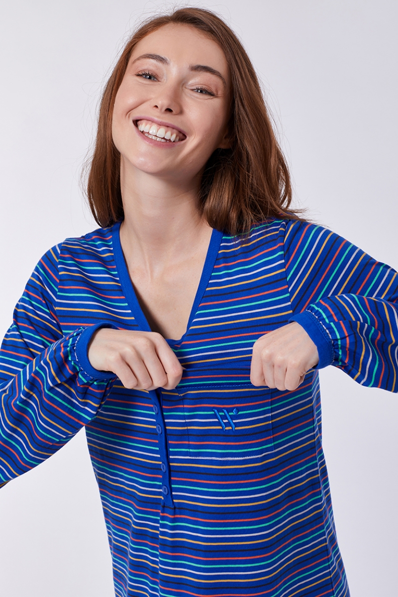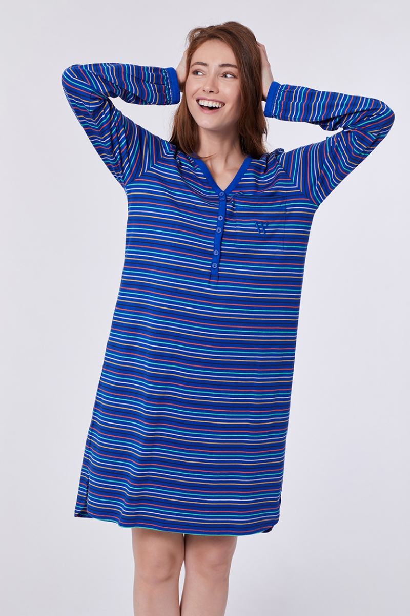 Resim Kadın Gecelik-Sıx - 901-Boğa Temalı Çizgili Koyu Lacivert