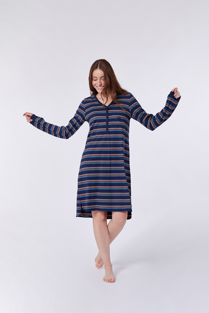 Resim Kadın Gecelik-Sıx - 900-Kutup Ayısı Temalı Çizgili İndigo Mavi