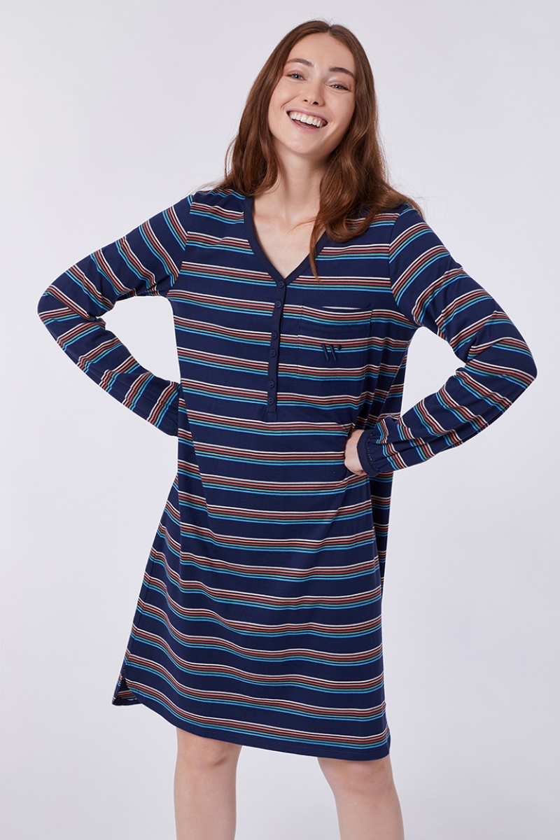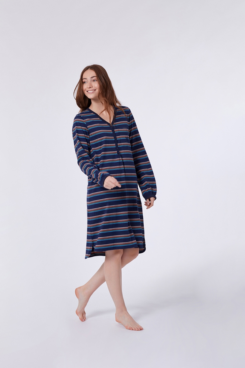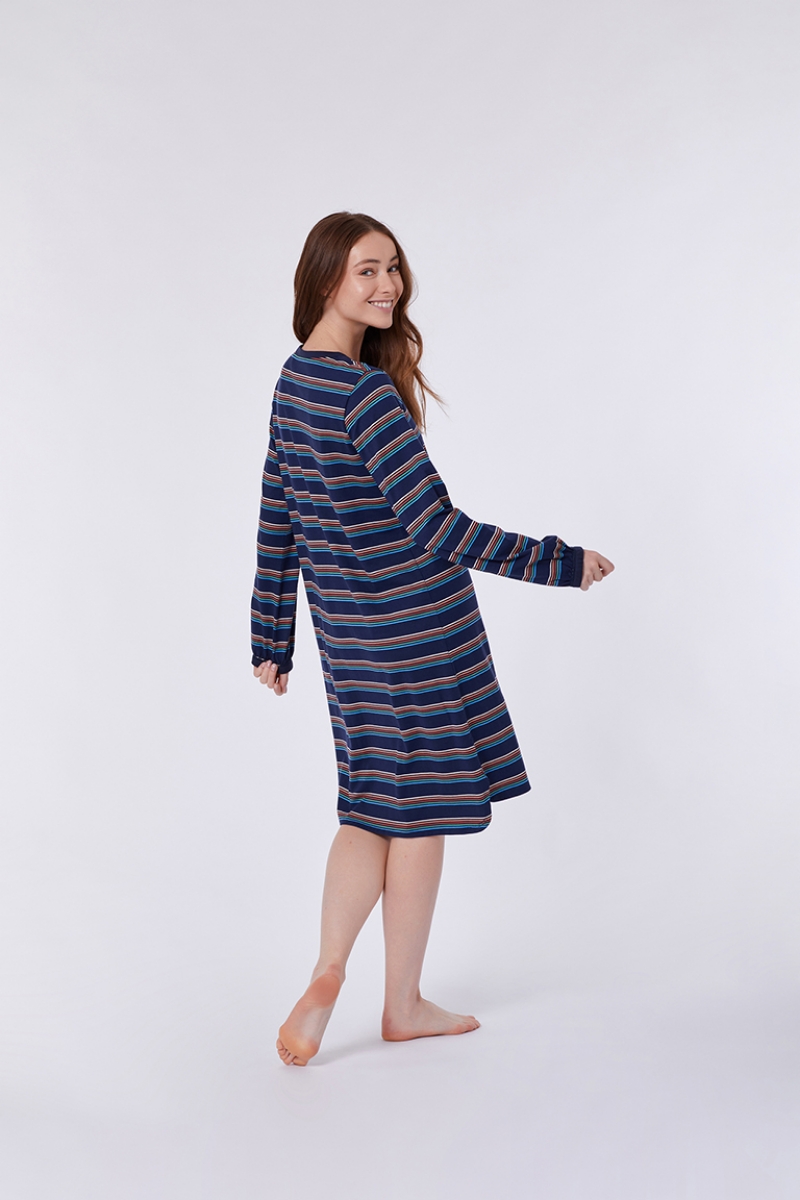 Kadın Gecelik-Sıx - 901-Boğa Temalı Çizgili Koyu Lacivert