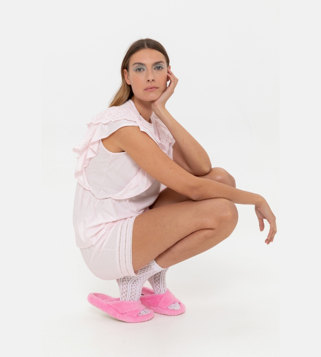 - Güpür detaylı düşük kol bluz-Xlg - 412-Toz Pembe