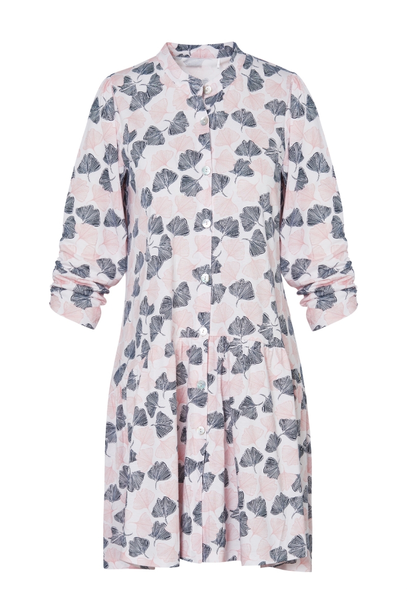 Hakim yaka detaylı büzgülü elbise-Xdj - 915-Fısıldayan Pembe Yapraklar