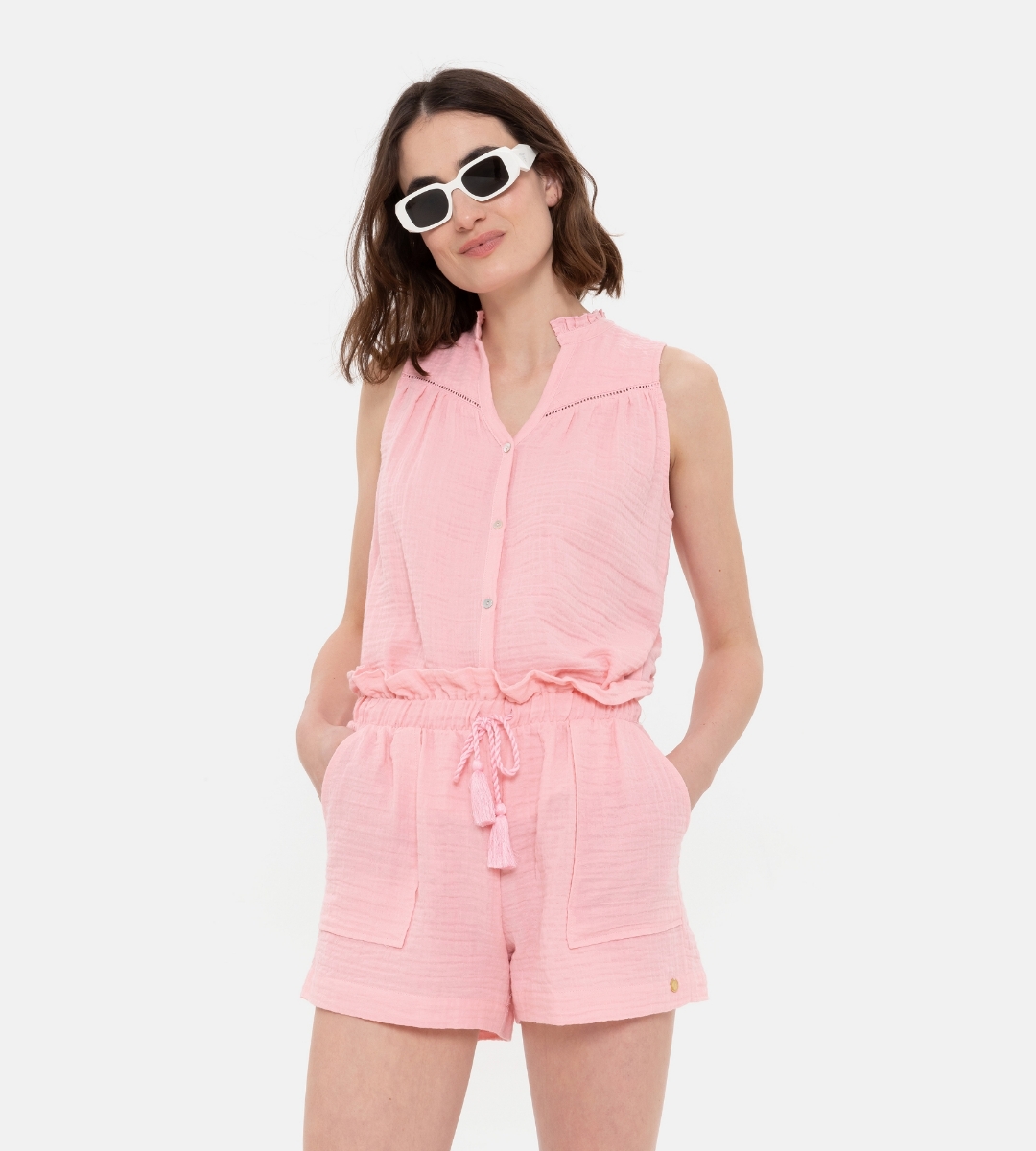 - Hakim yaka önden düğmeli bluz-Tld - 424-Şeker Pembe