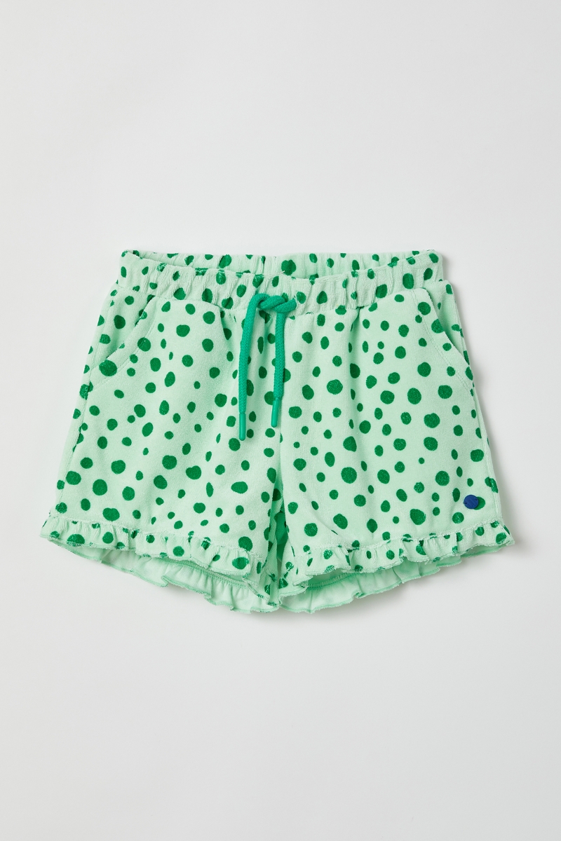 2-8 Yaş Havlu Kız Çocuk Şort-Shg - 957-Yeşil Puantiyeli