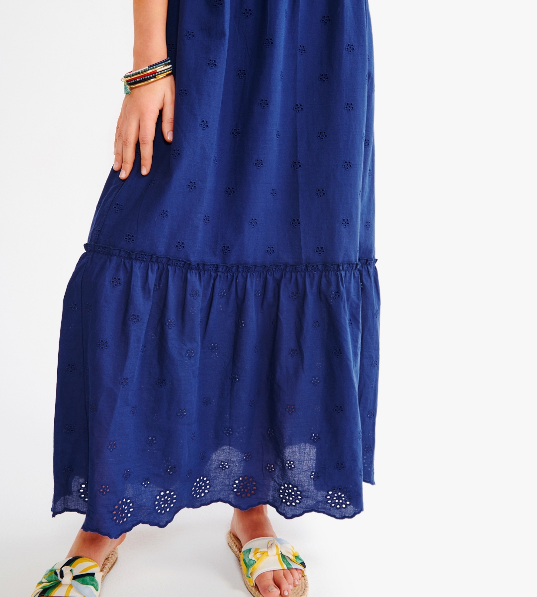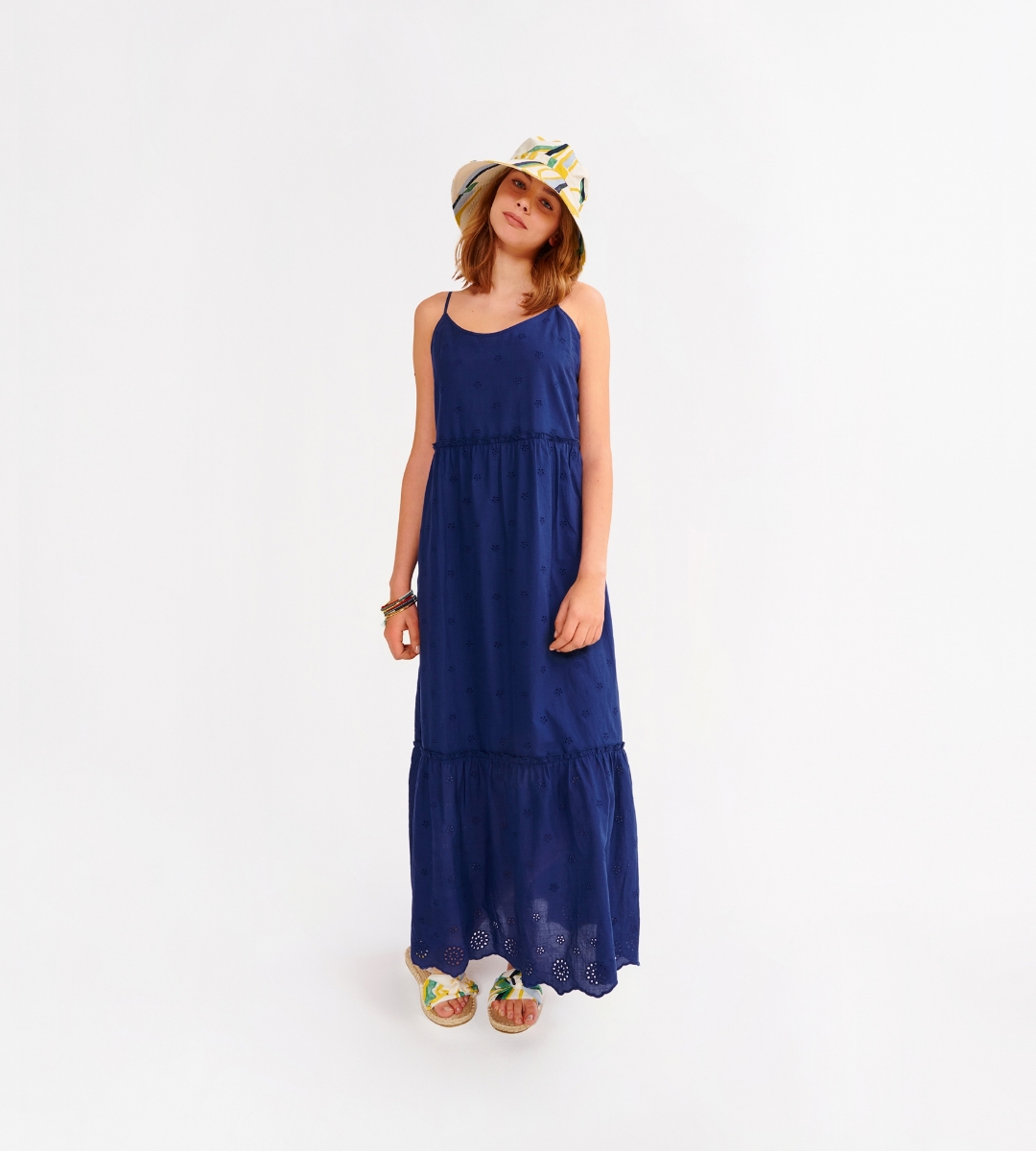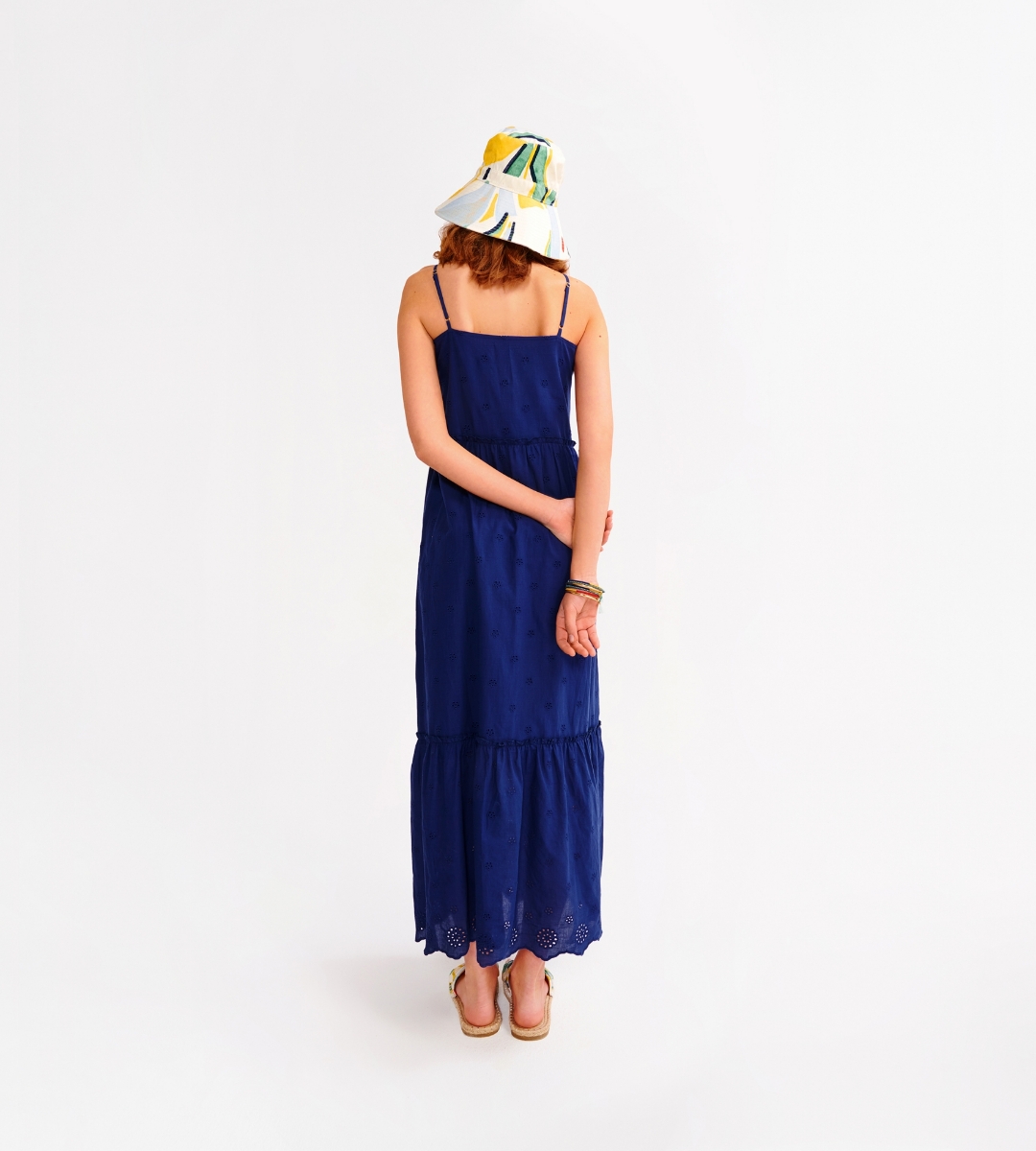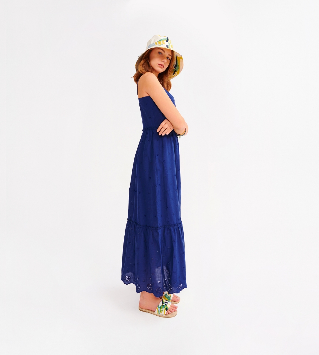 - İnce askılı büzgülü elbise-Lpw - 878-Kozmik Lacivert