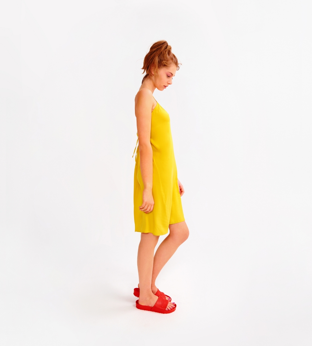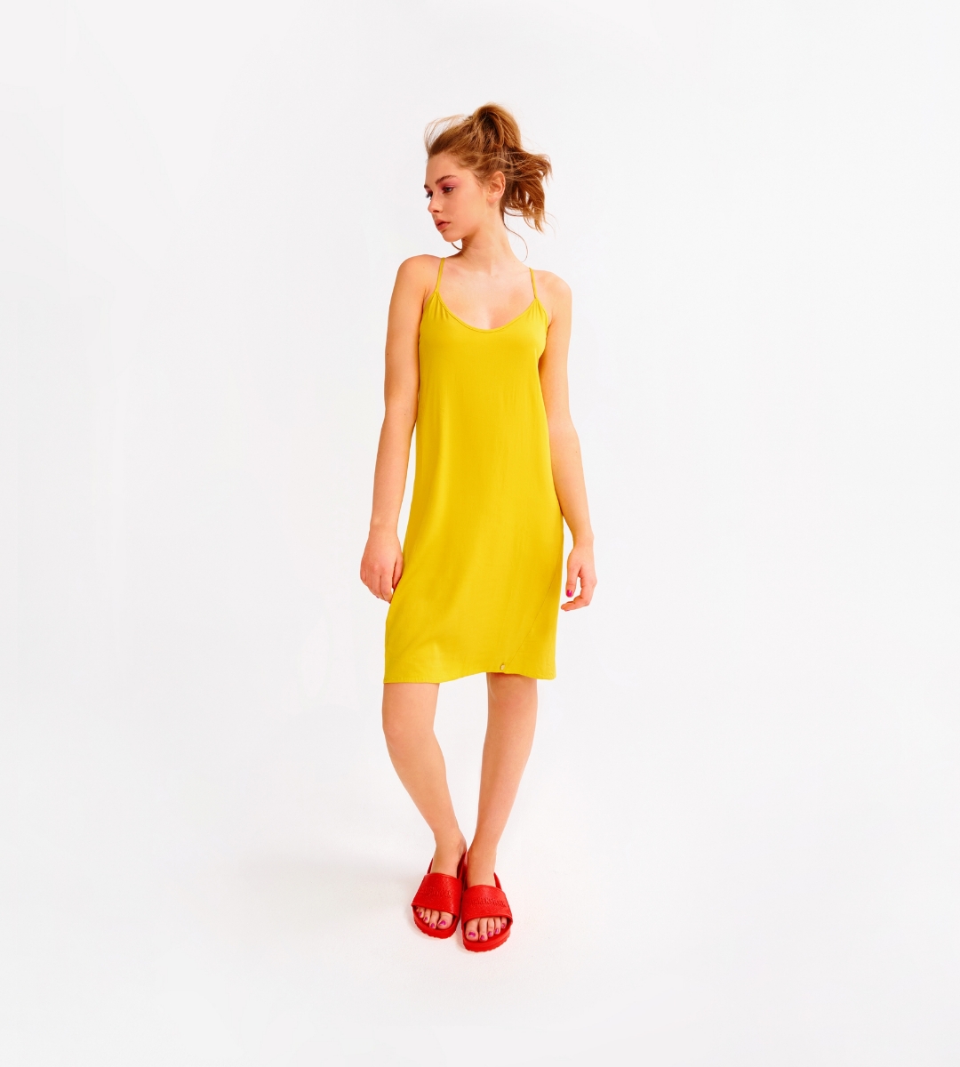 - İnce askılı viskoz elbise-Lds - 651-Sarı