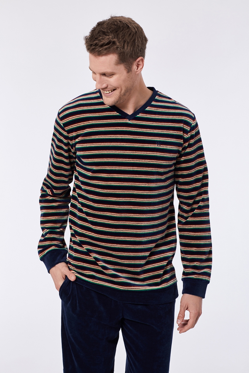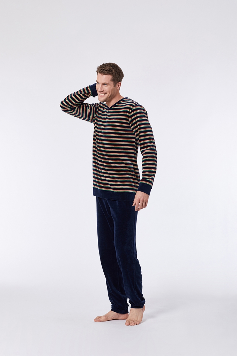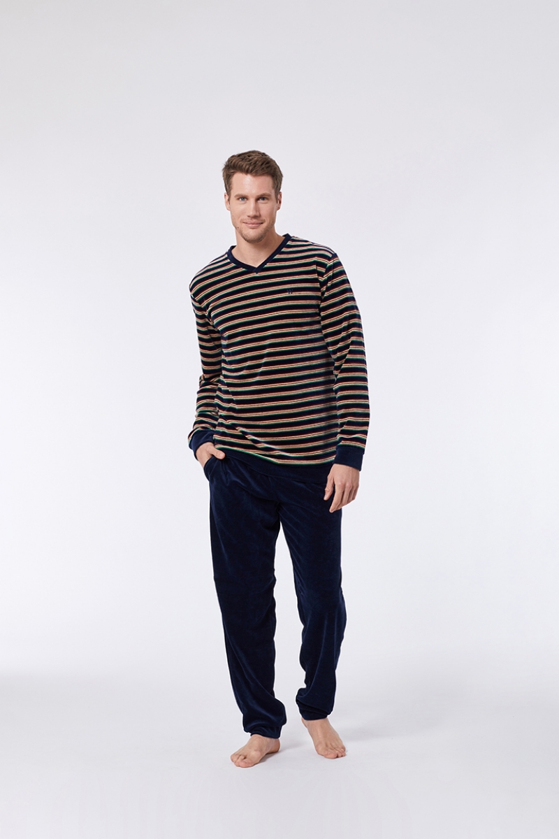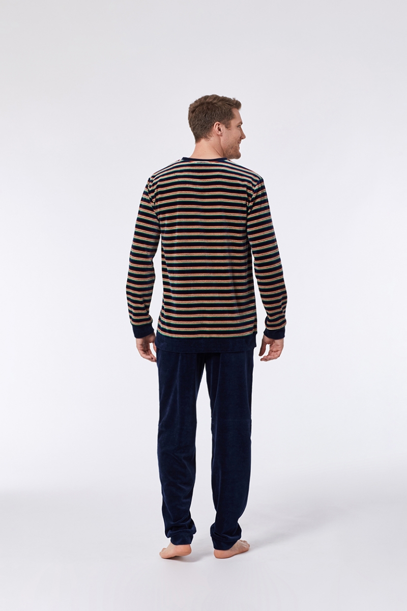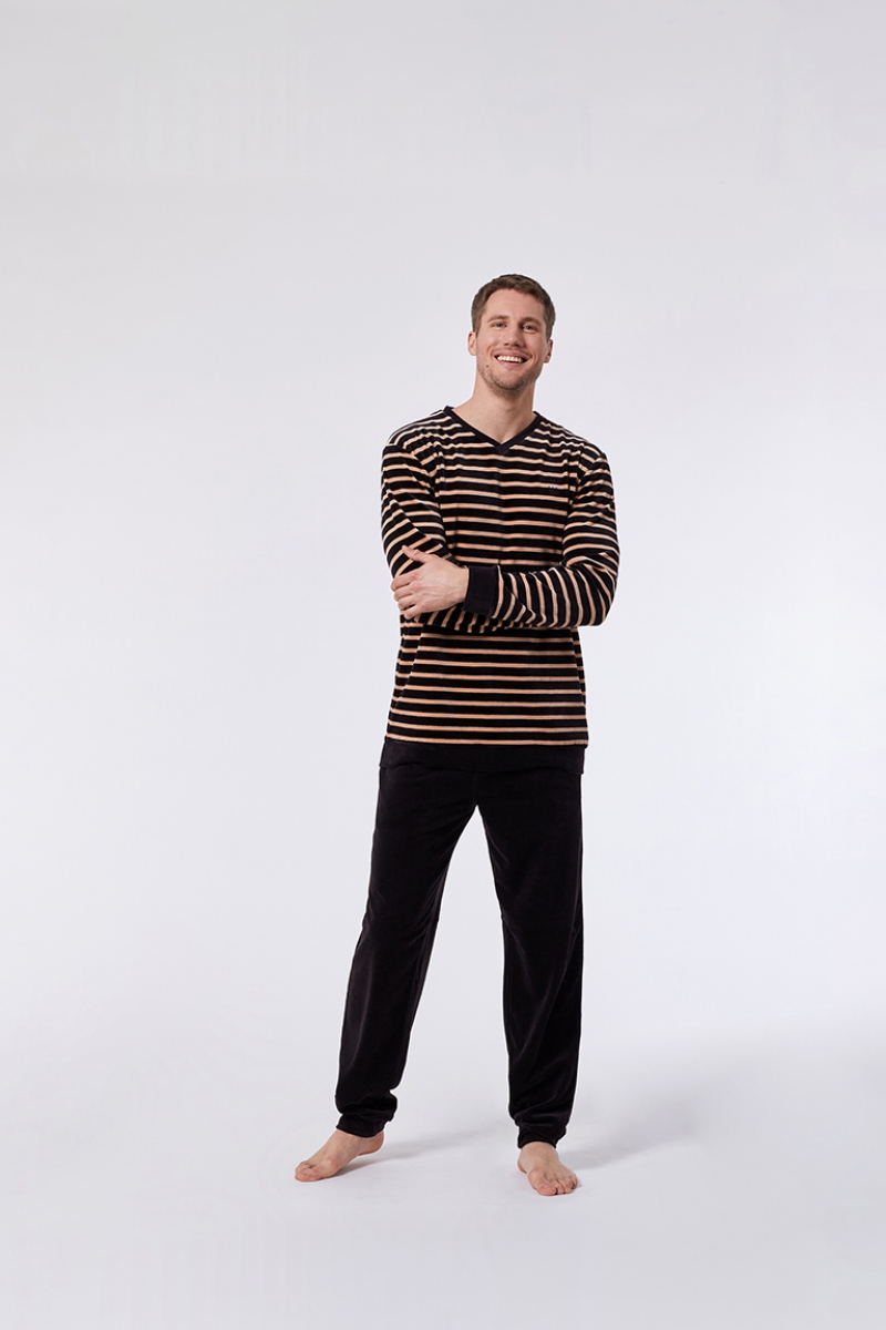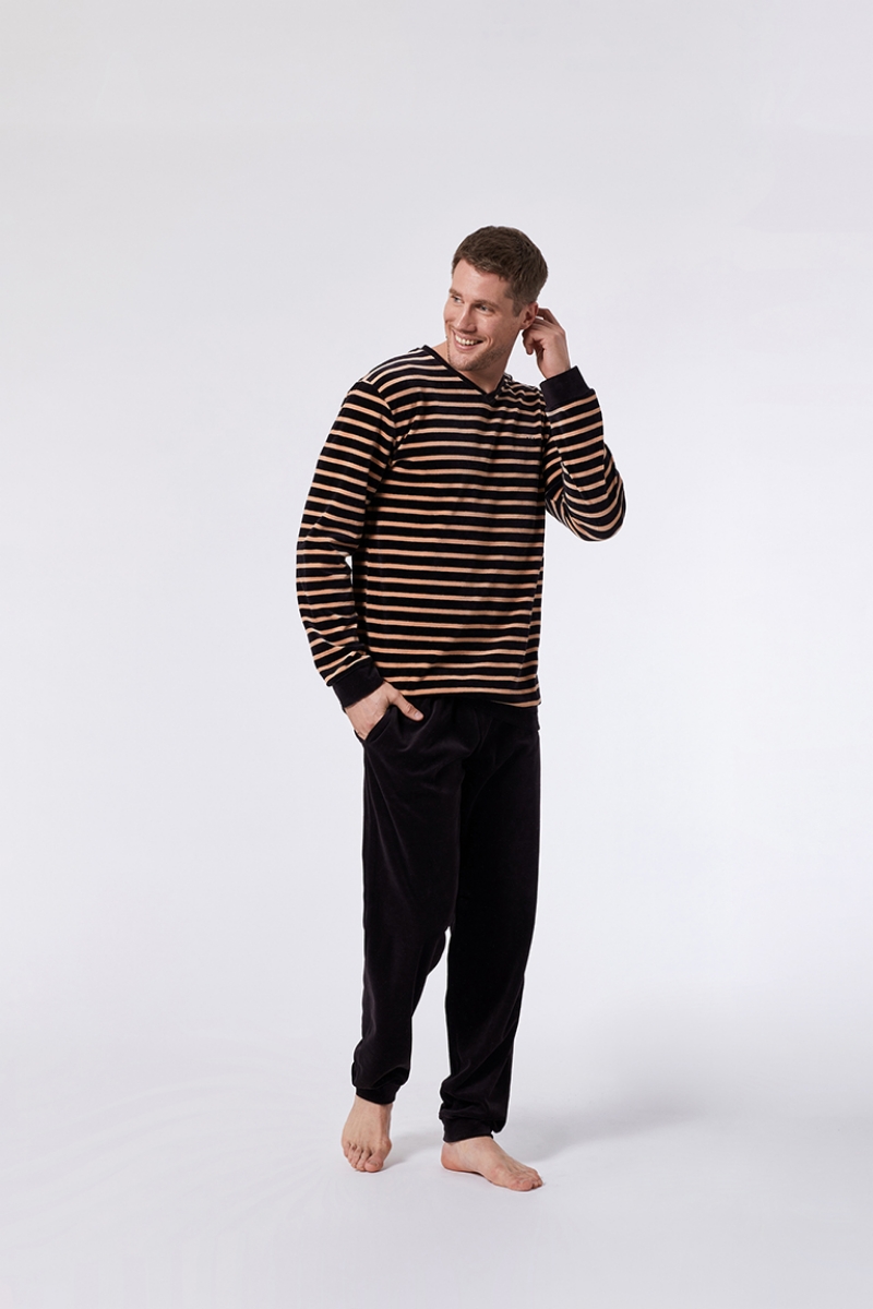 - Kadife Erkek Pijama-Mvl - 934-Kutup Ayısı Temalı Çizgili Sütlü Kahve