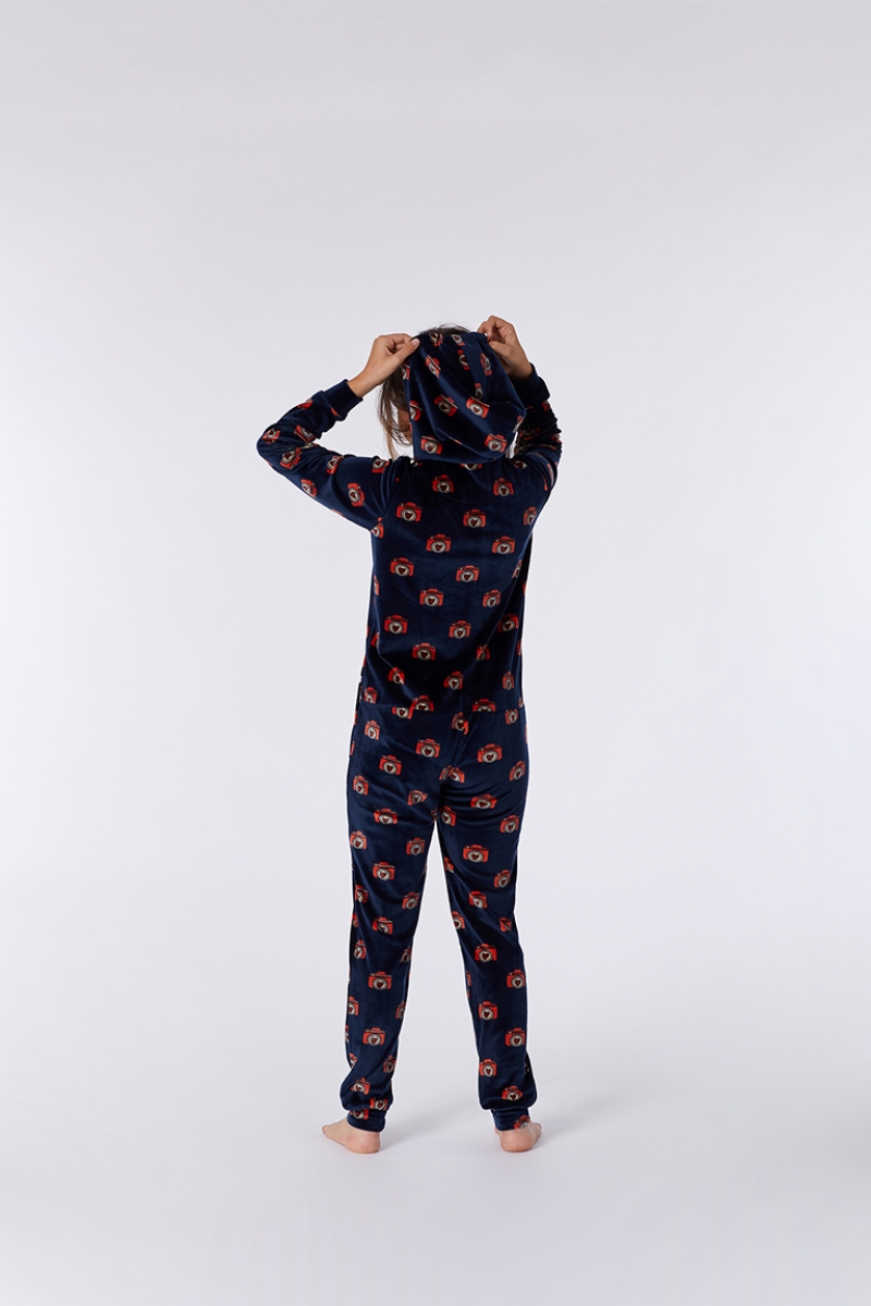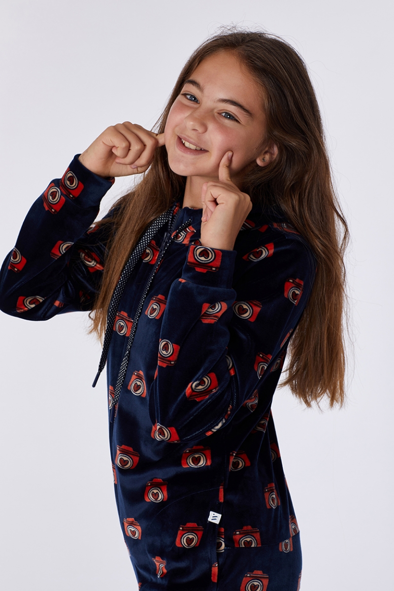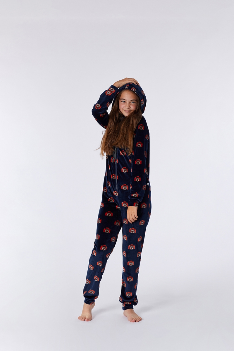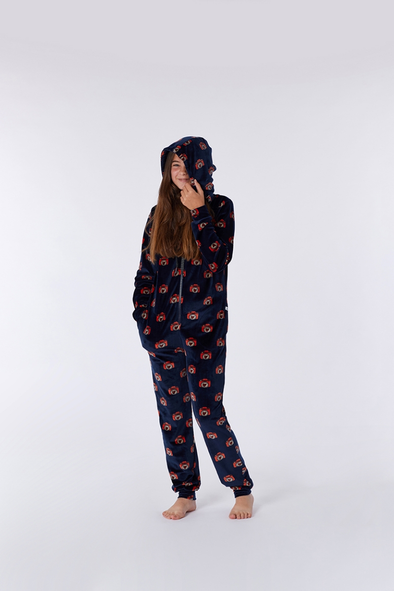 Kadife Kız Çocuk Tulum-Yob - 948-Göz Baskılı Kırmızı