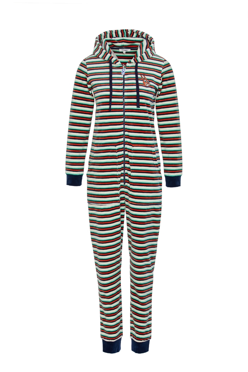 10-16 Yaş Kadife Unisex Tulum-One - 918-Sincap Temalı Çok Renkli Çizgili