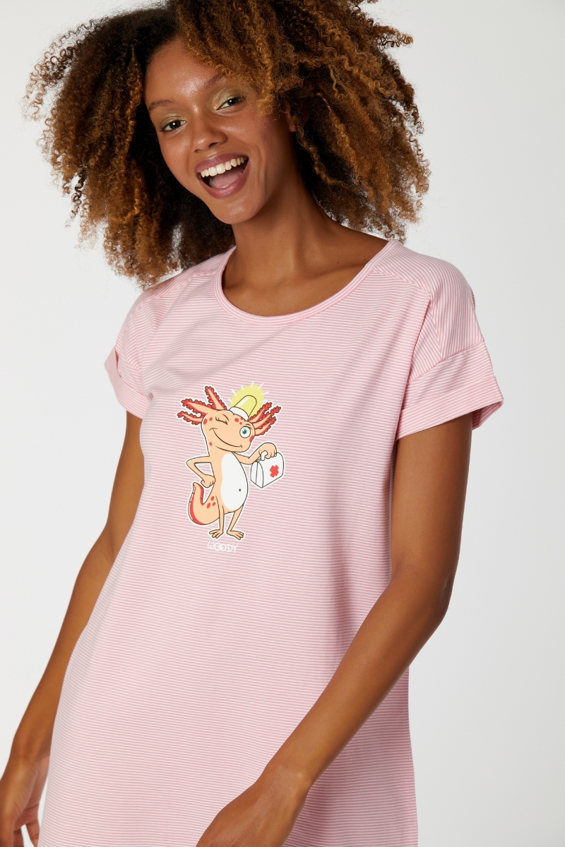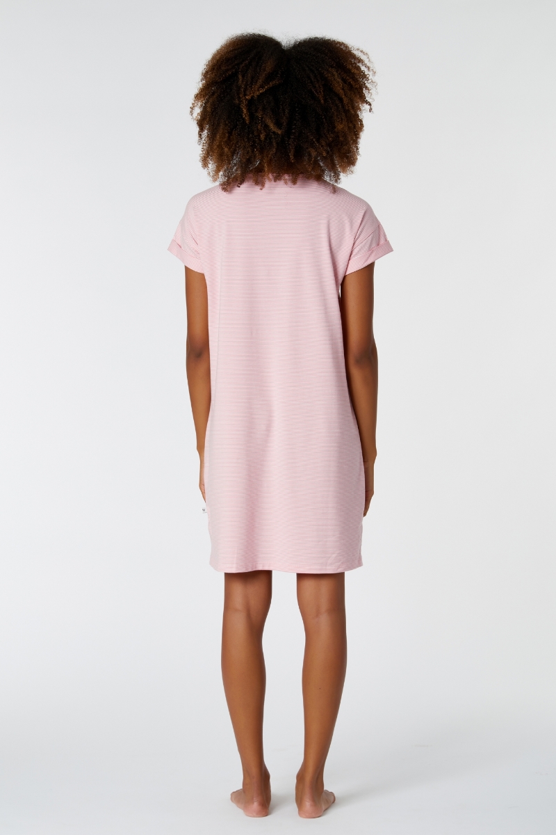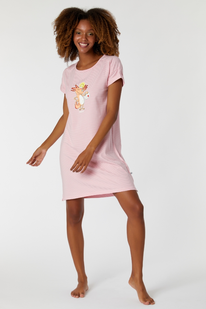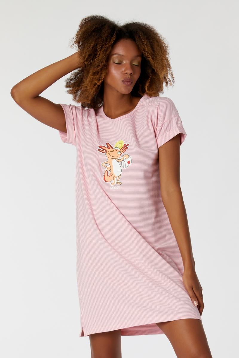 Kadın Gecelik-Dza - 943-Semender Temalı Çizgili Pembe