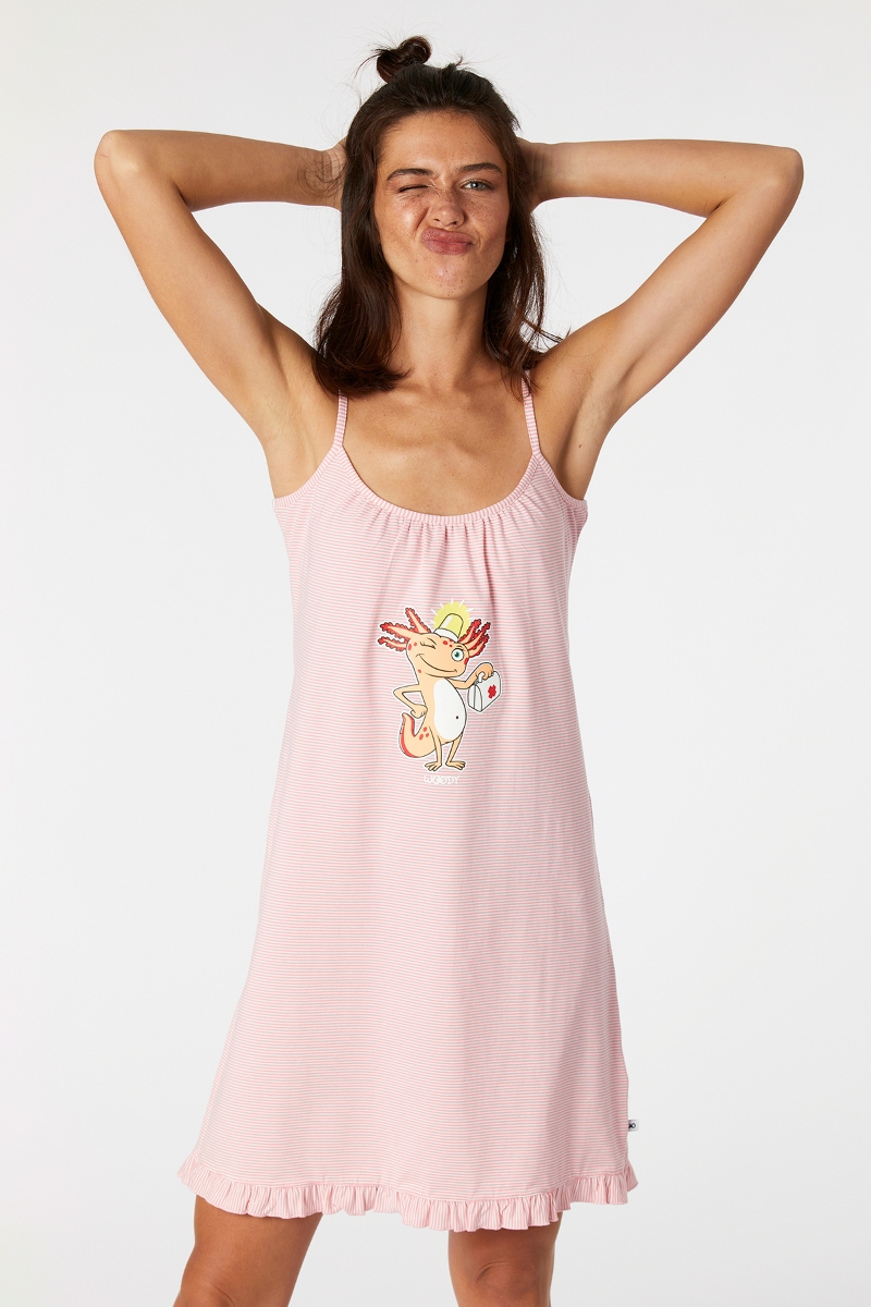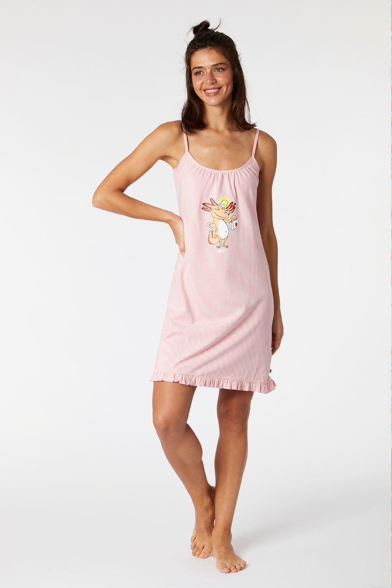 Kadın Gecelik-Dzb - 943-Semender Temalı Çizgili Pembe