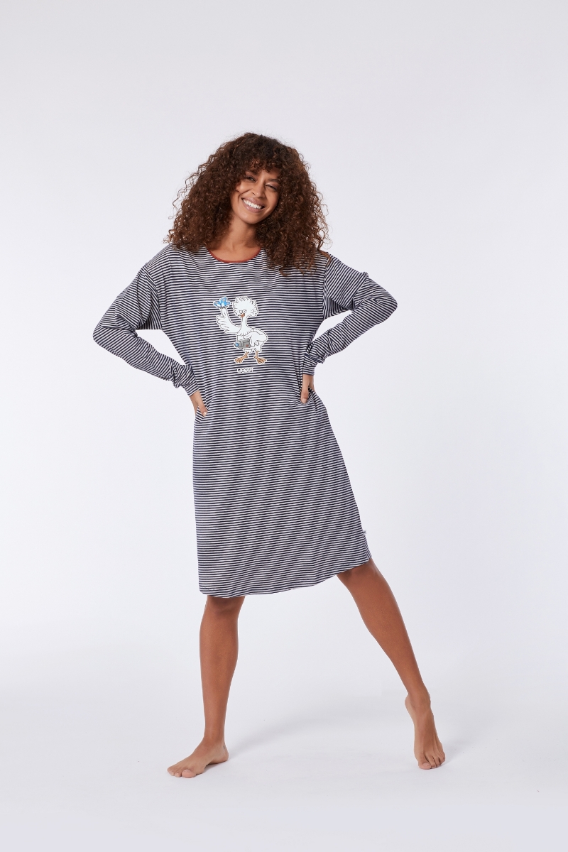 Kadın Gecelik-Dzf - 916-Boğa Temalı Çizgili Lacivert