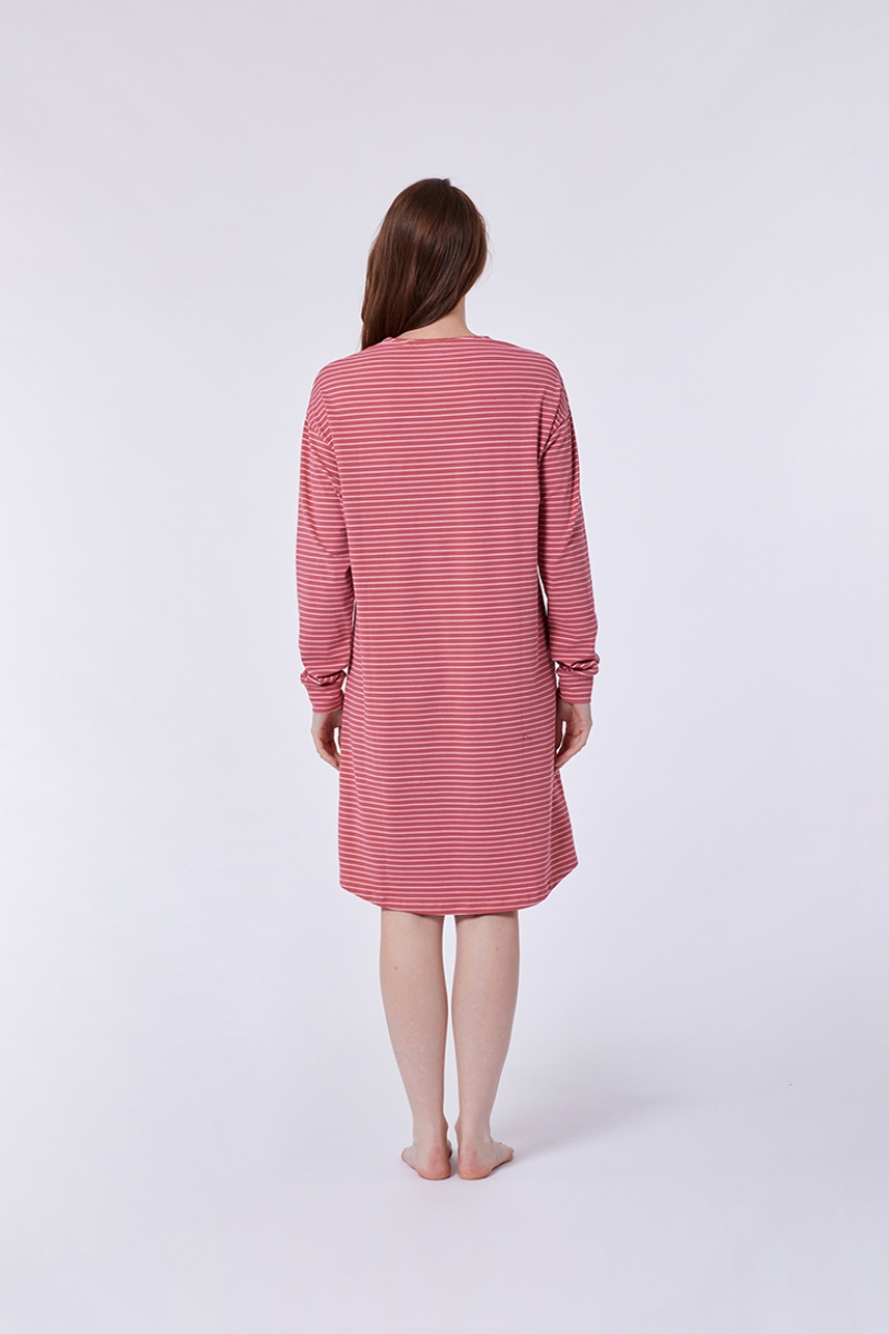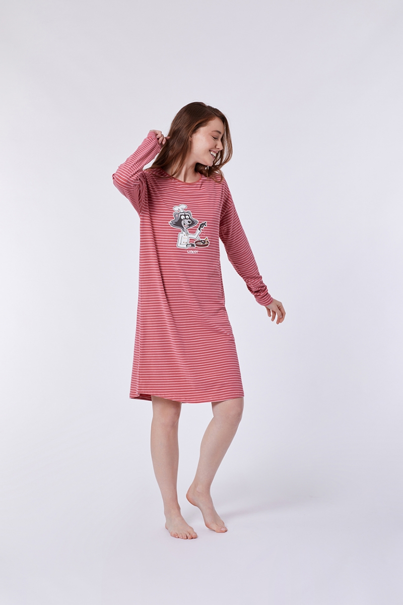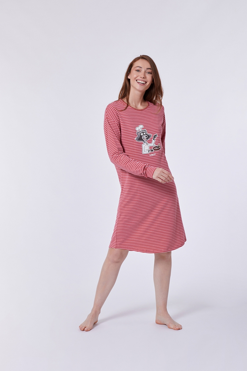 Kadın Gecelik-Dzf - 923-Rakun Temalı Çizgili Kırmızı