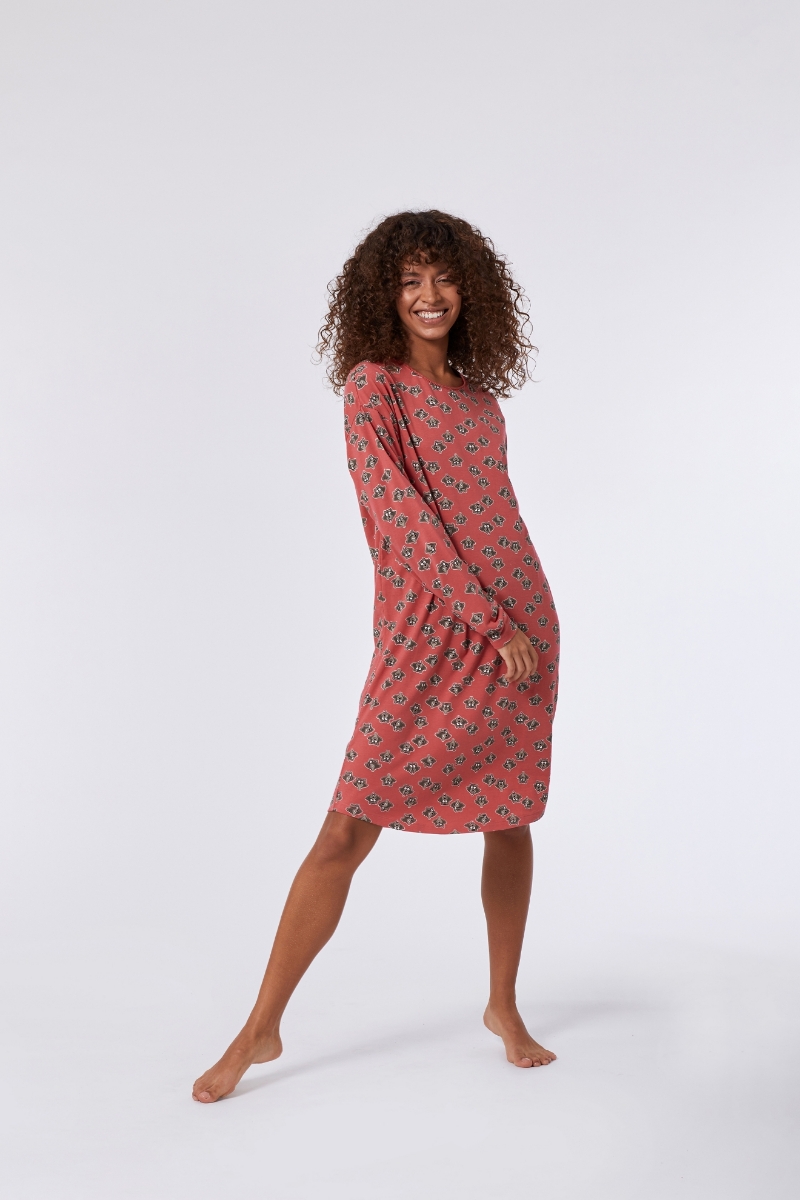 Kadın Gecelik-Dzf - 926-Rakun Baskılı Gül Kırmızısı