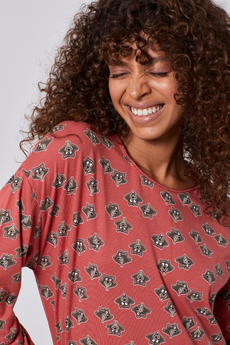 Resim Kadın Gecelik-Pol - 437-Rakun Temalı Gül Kırmızısı