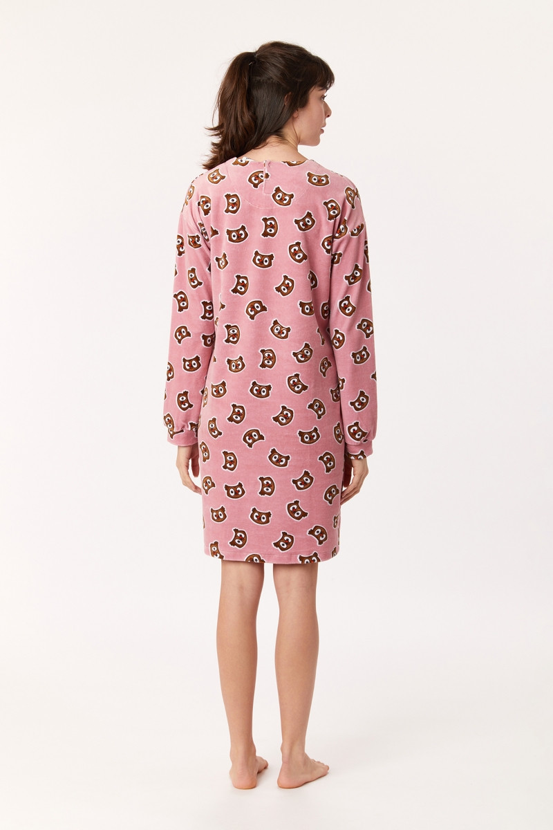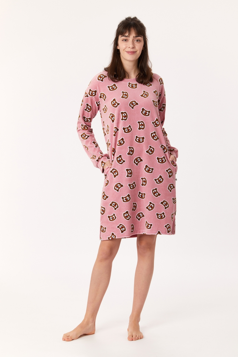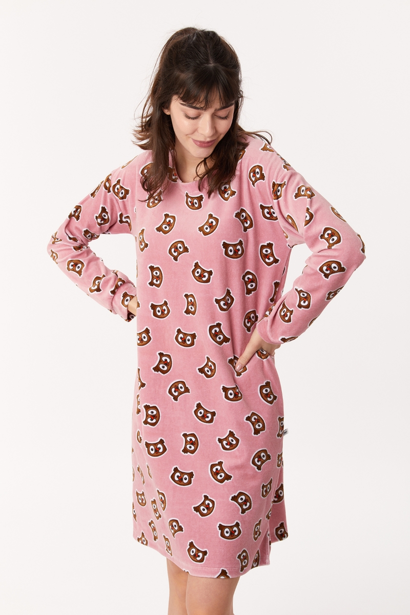 Kadın Gecelik-Nıl - 913-Baykuş Baskılı Vizon Pembe