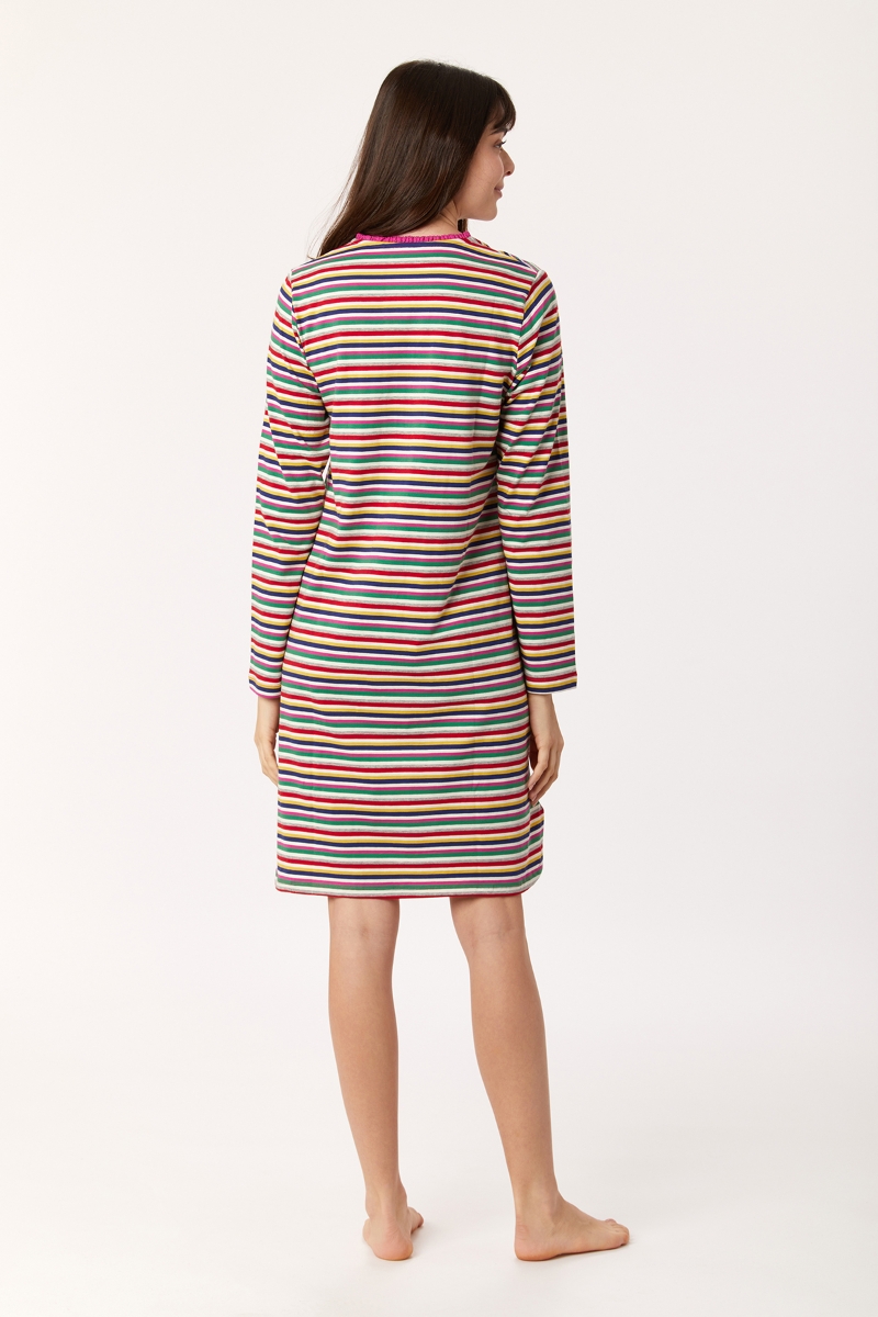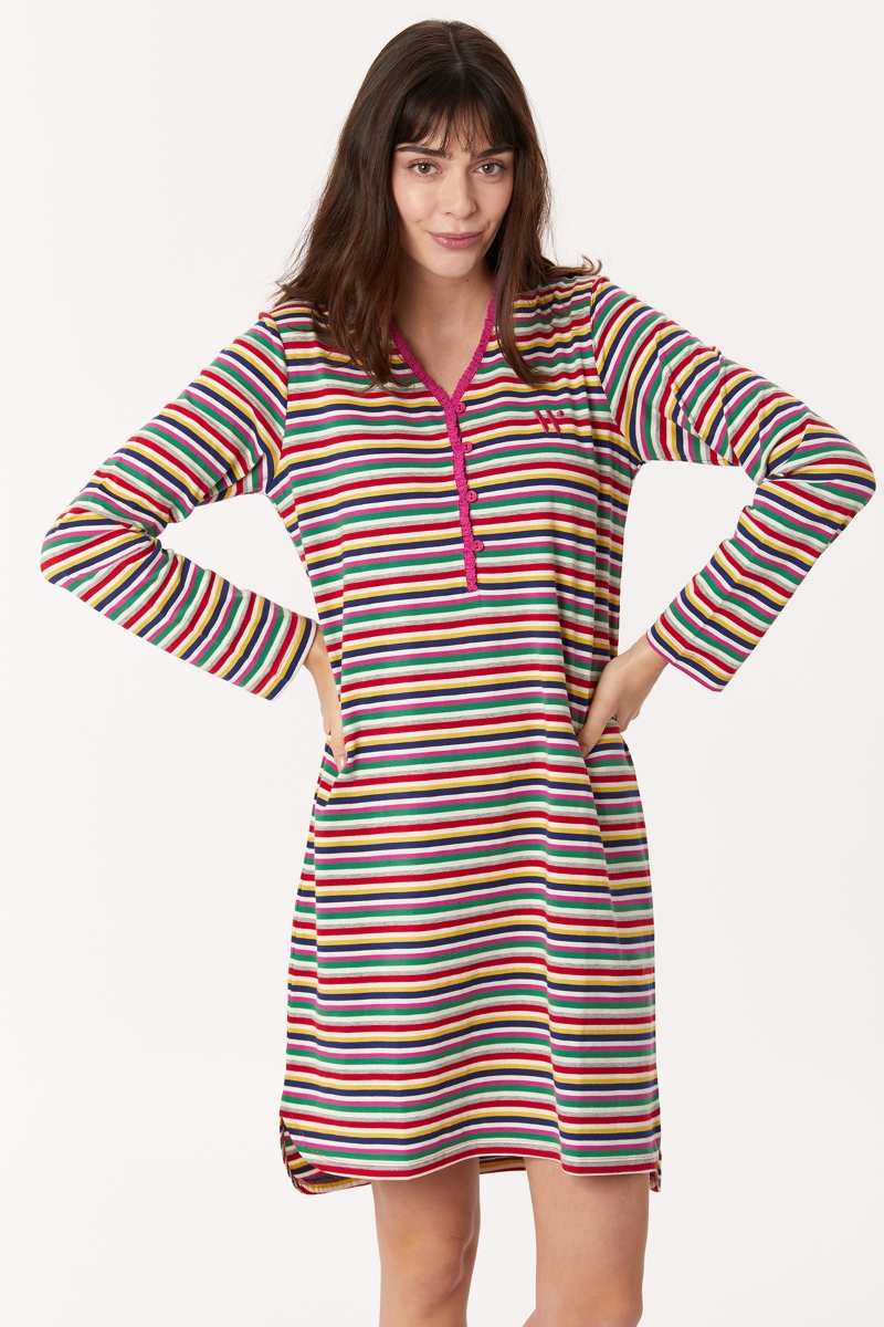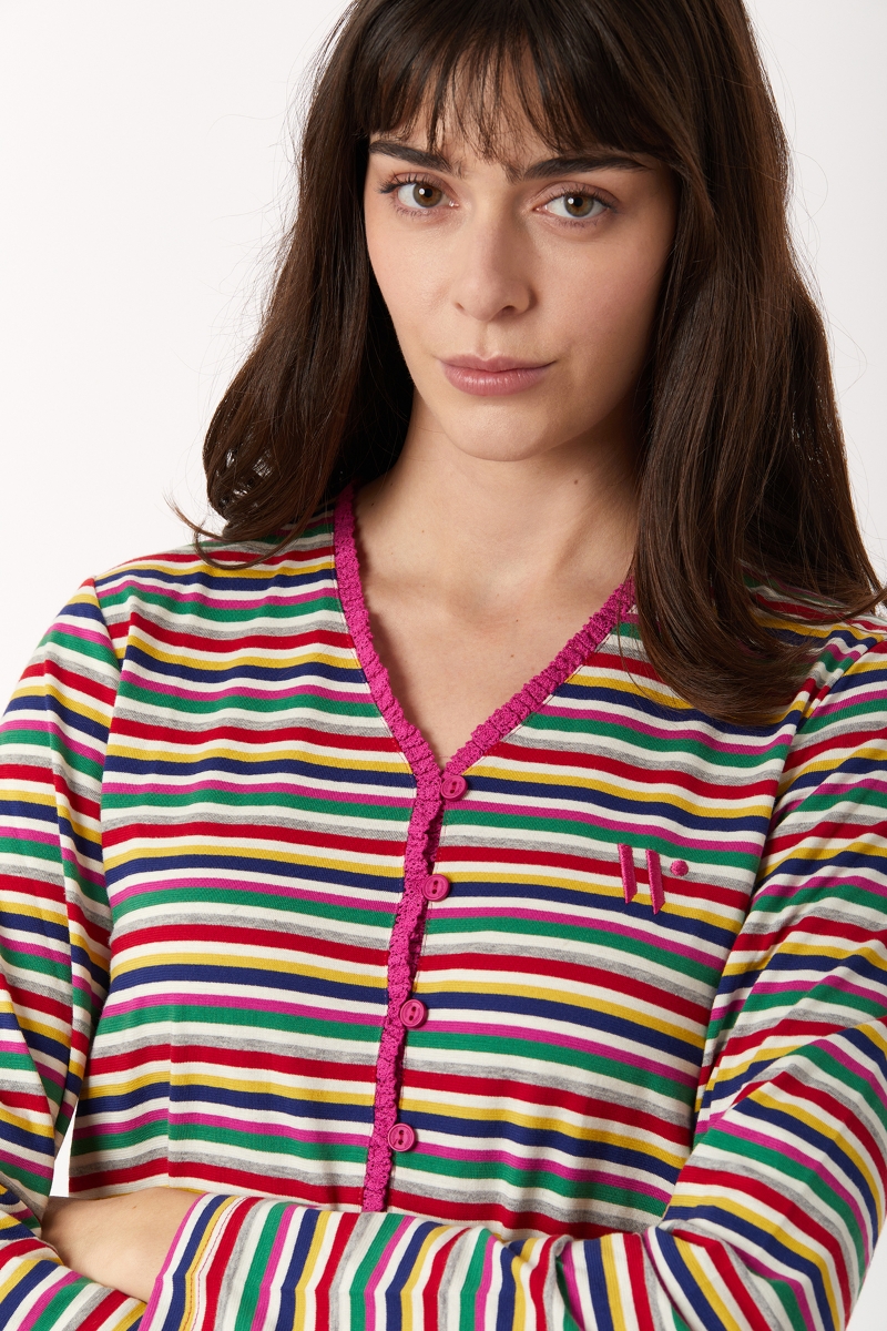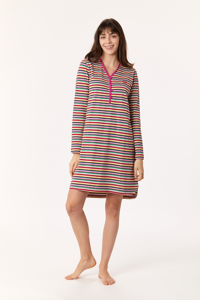 Kadın Gecelik-Sıx - 921-Koyun Temalı Çok Renkli Çizgili Fuşya