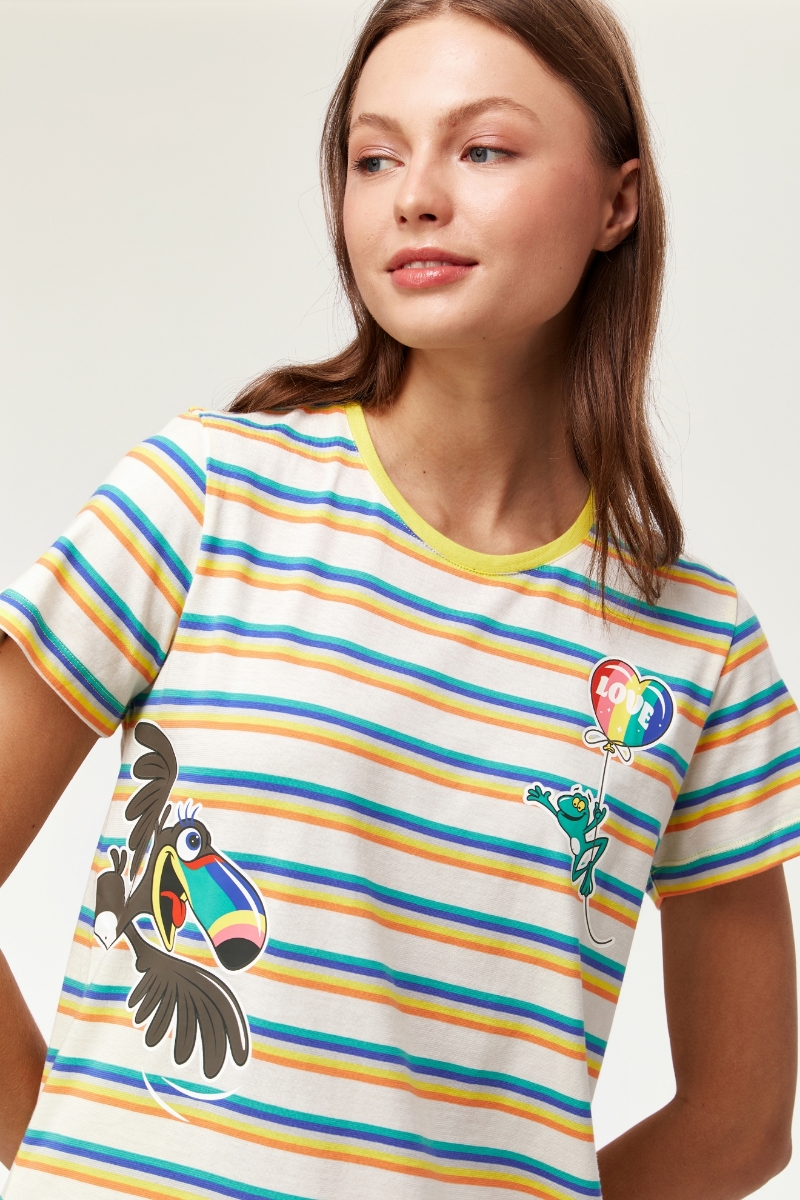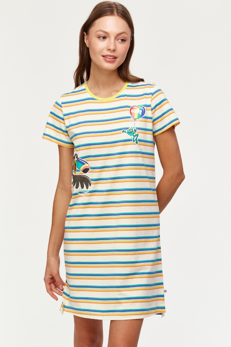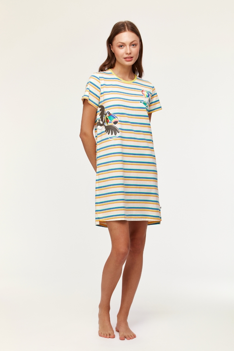 - Kadın Gecelik-Tsl - 908-Tukan Temalı Çizgili Mavi