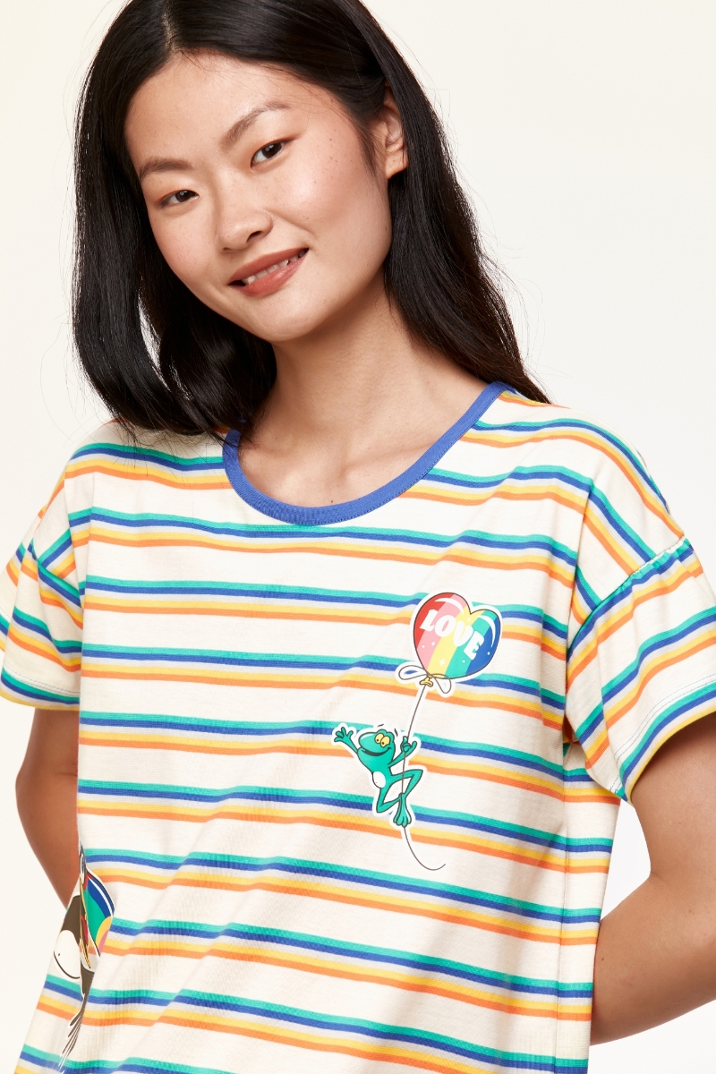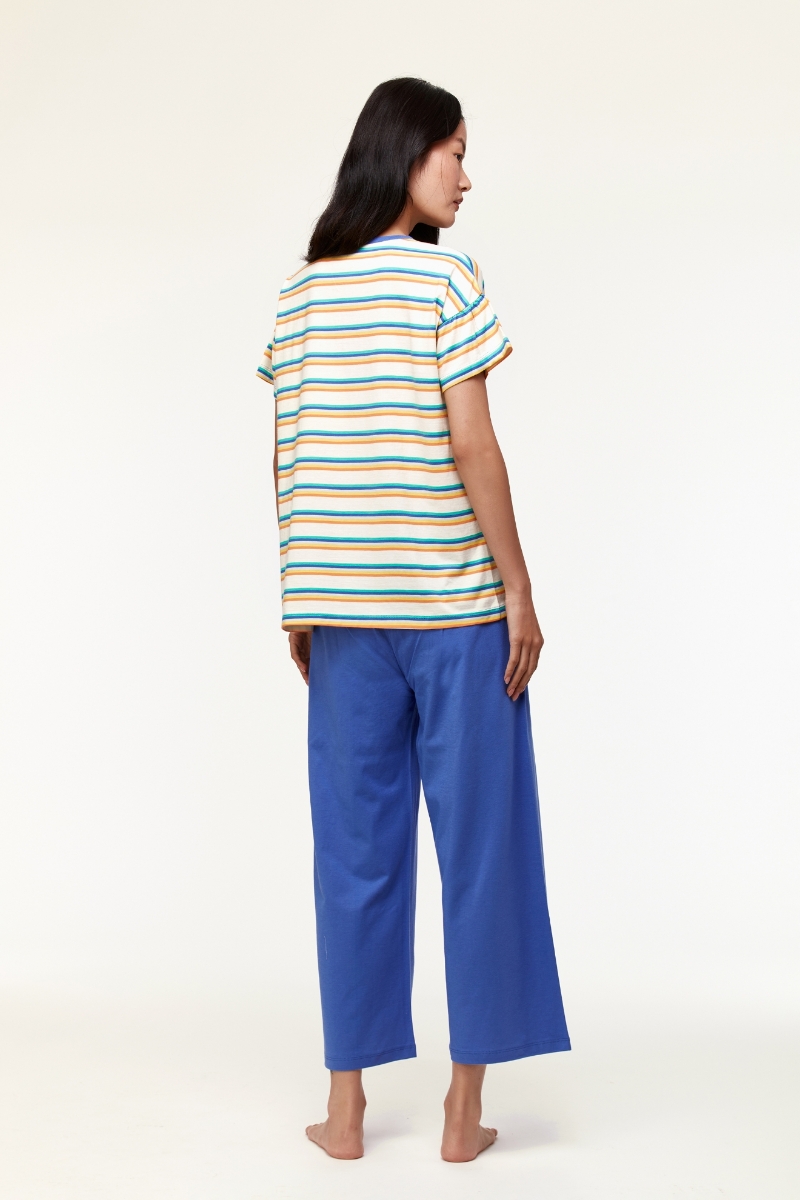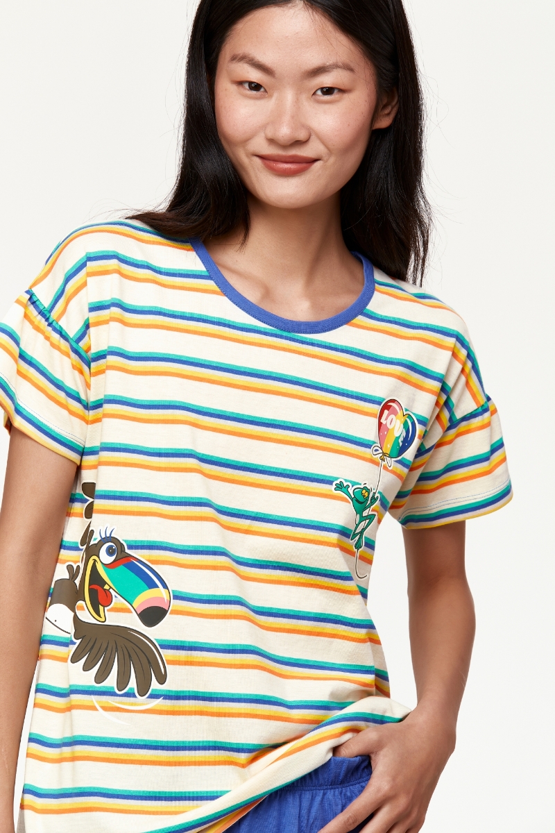 - Kadın Pijama-Bsk - 908-Tukan Temalı Çizgili Mavi