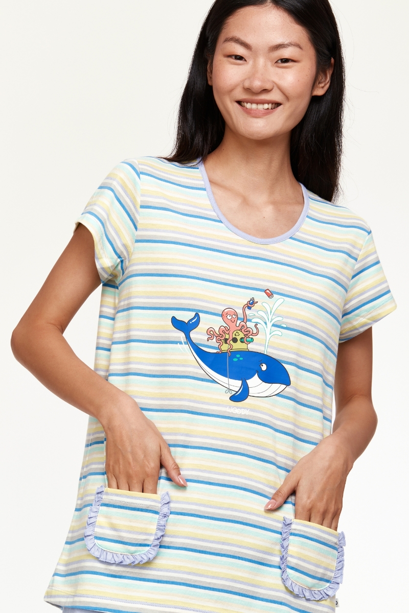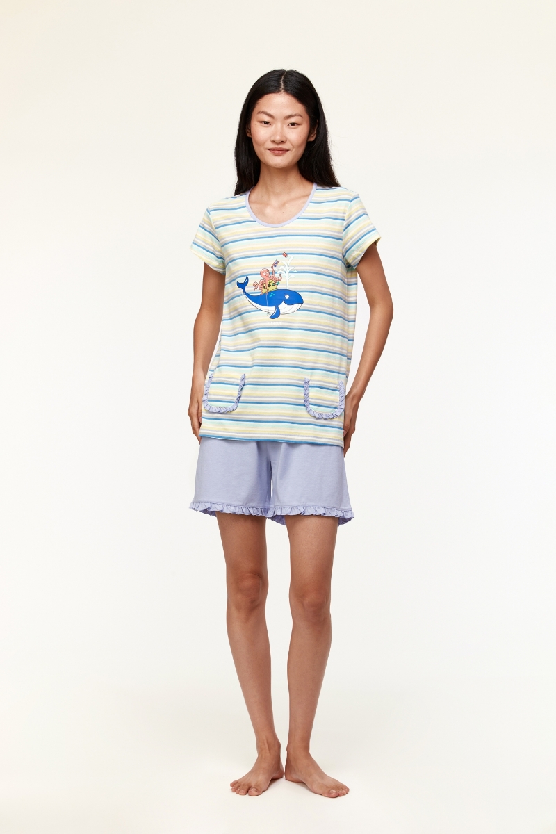 - Kadın Pijama-Psg - 904-Balina Temalı Çizgili Mavi