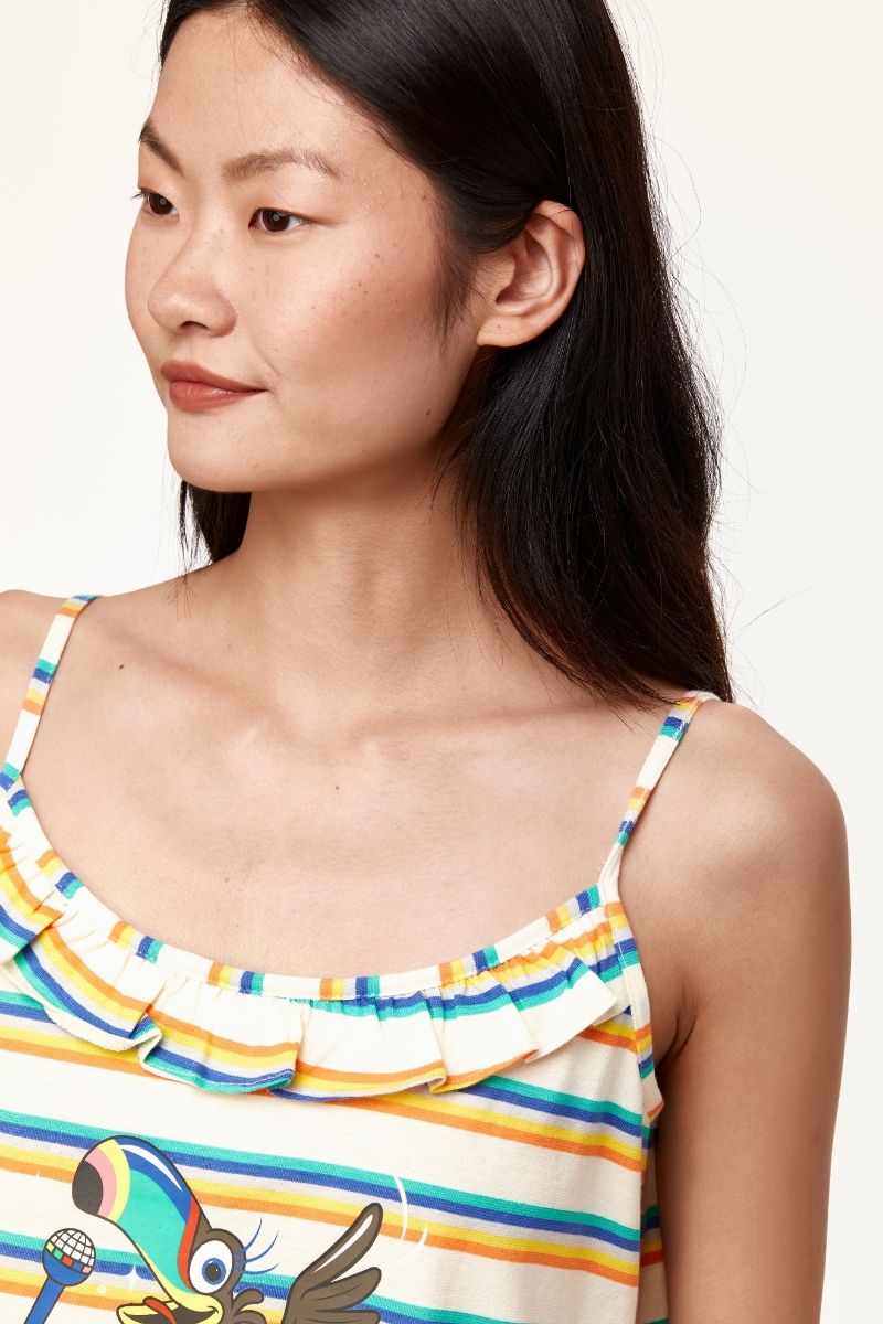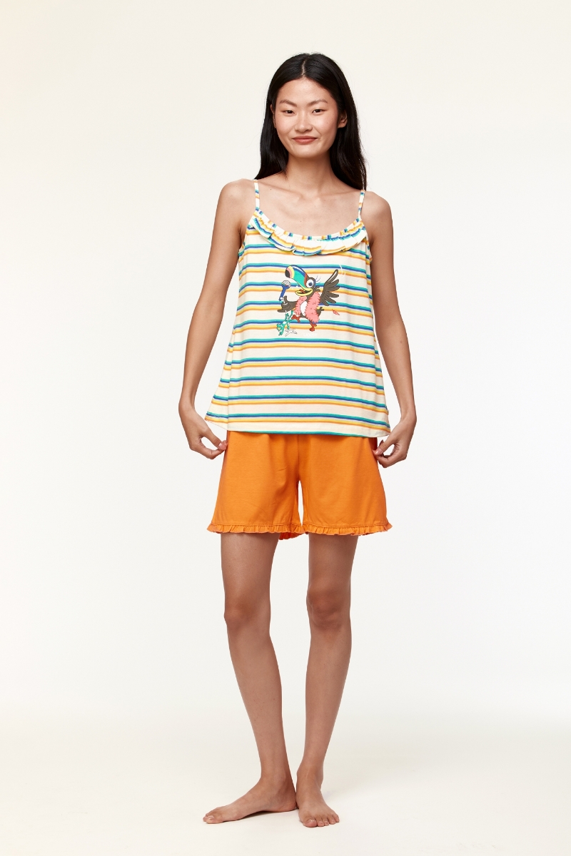 - Kadın Pijama-Psp - 908-Tukan Temalı Çizgili Mavi