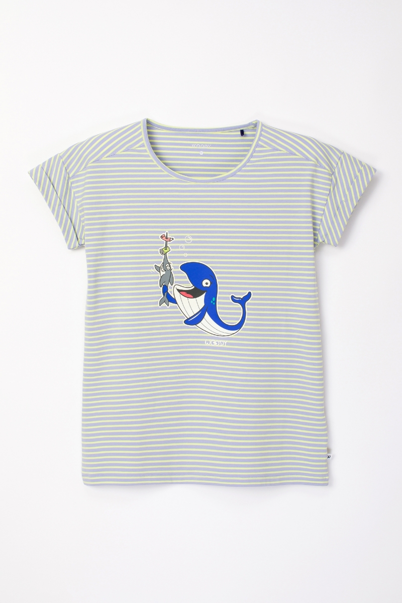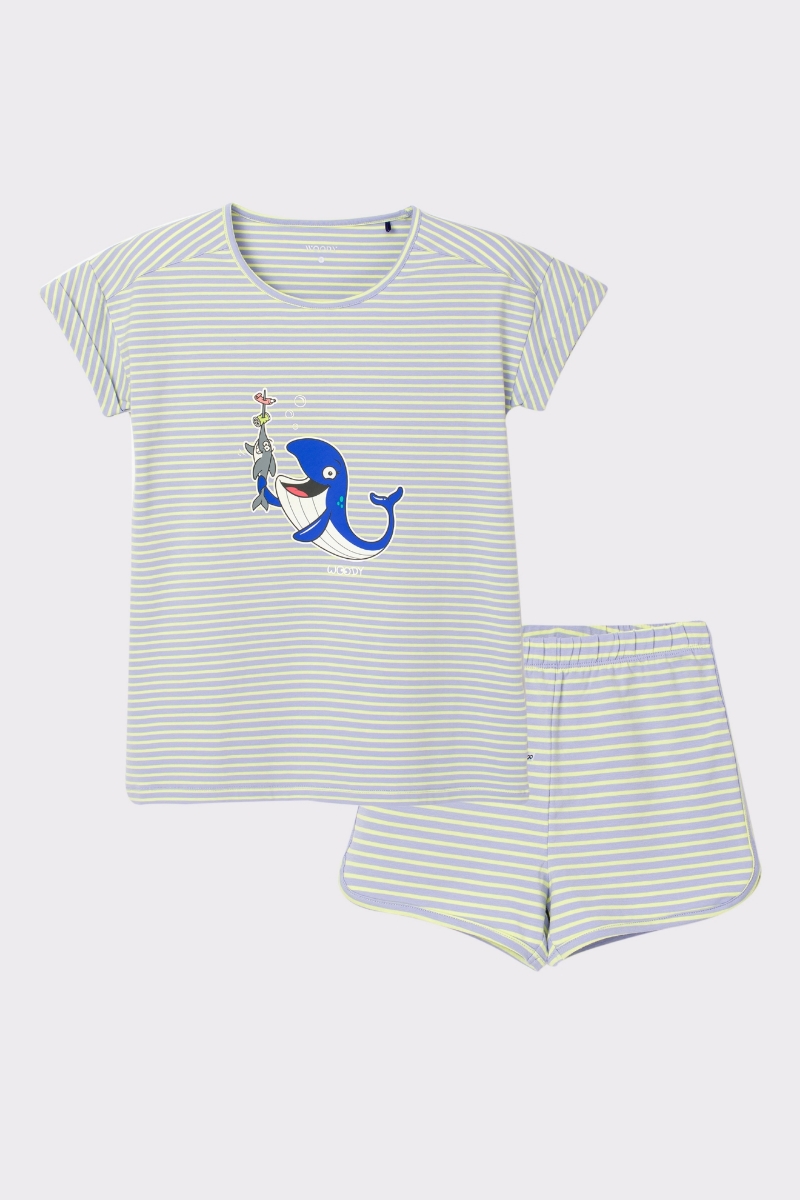 - Kadın Pijama-Pzg - 916-Balina Temalı Çizgili Mavi