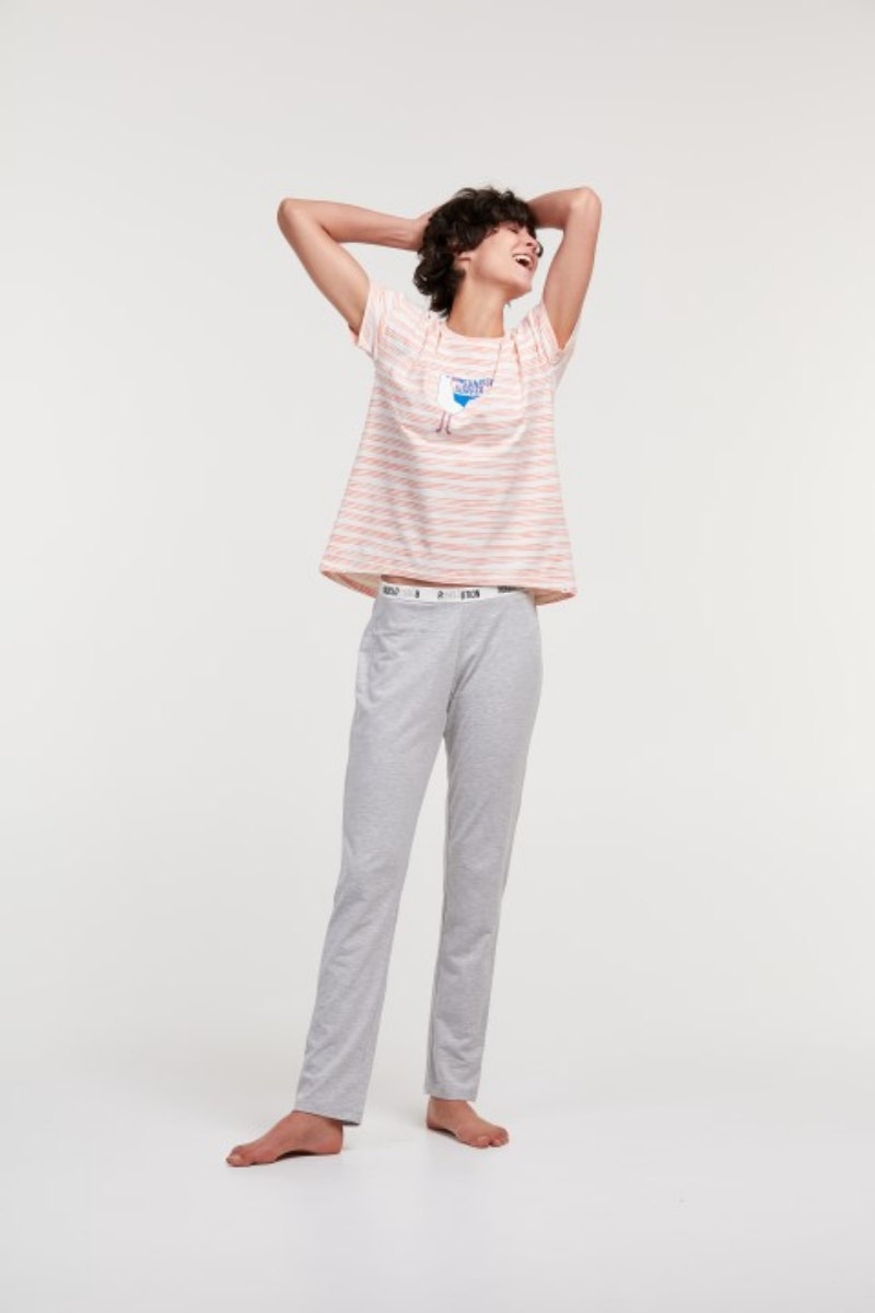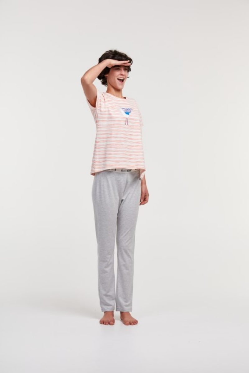 - Kadın Pijama-Ypa - 913-Deniz Kuşu Temalı Çizgili Somon