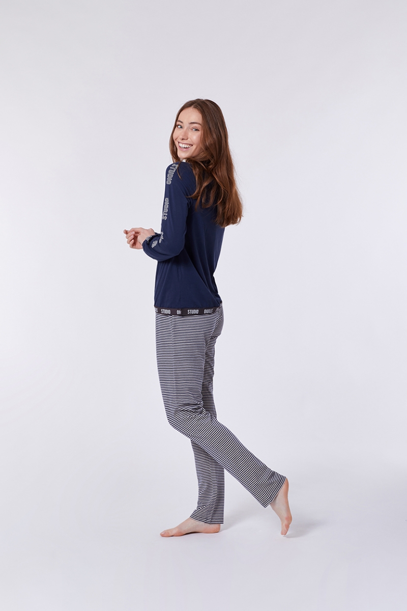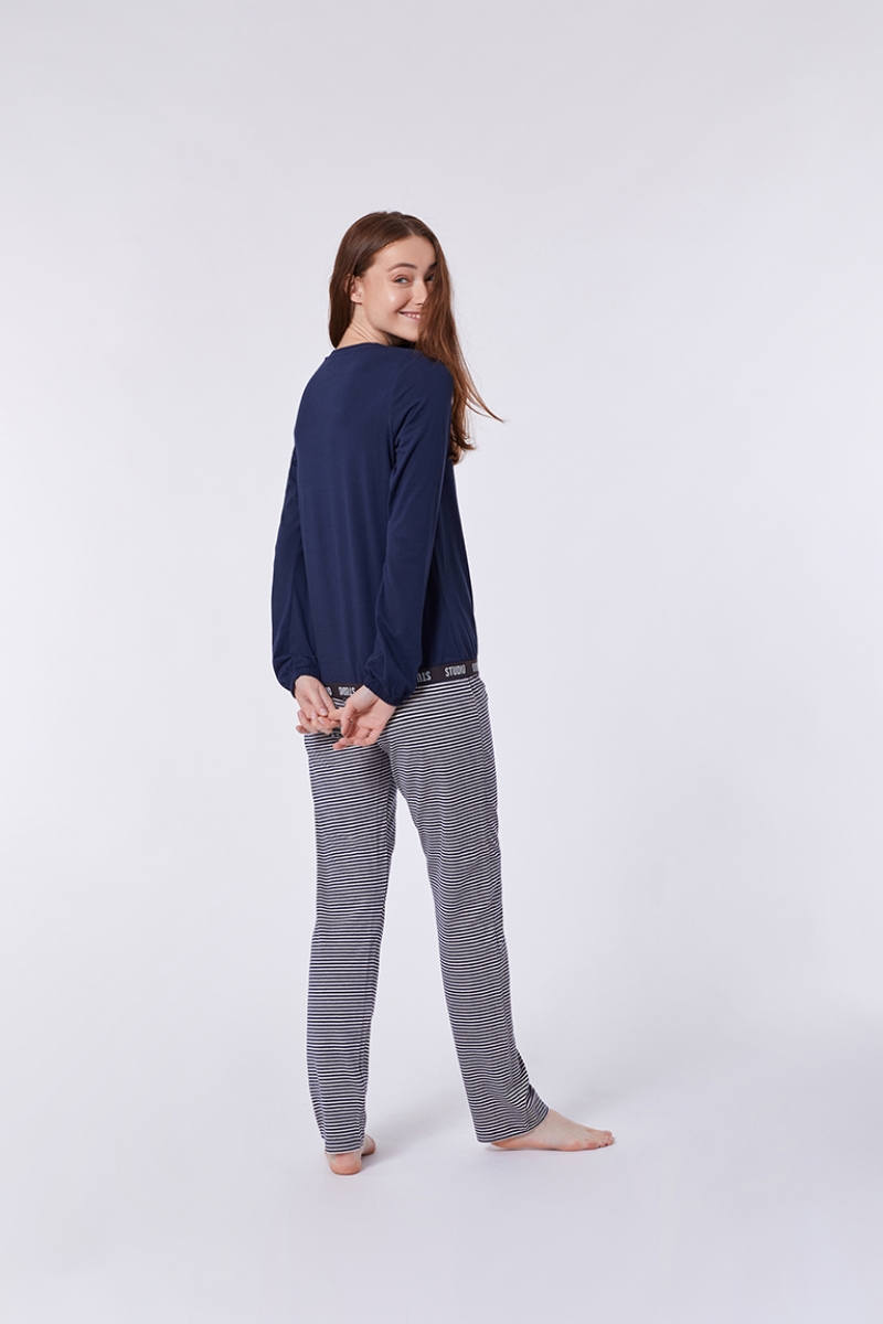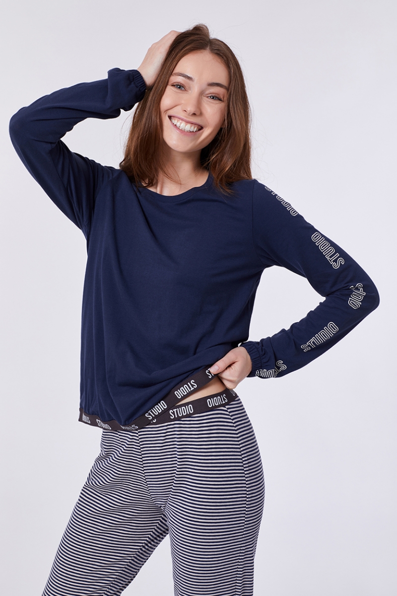 - Kadın Pijama-Ypb - 885-Boğa Temalı Koyu Lacivert