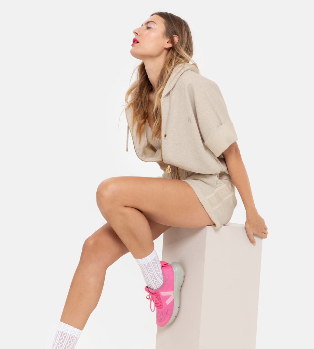 - Kapüşonlu sweat yelek-Mlc - 226-Sıcak Kum