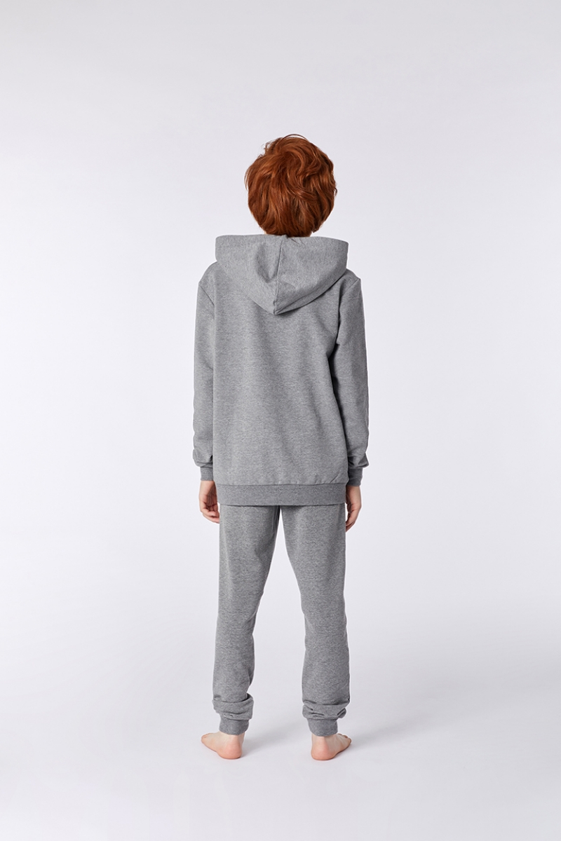 Kapüşonlu Sweatshirt-Qle - 125-Rakun Temalı Gri Melanj