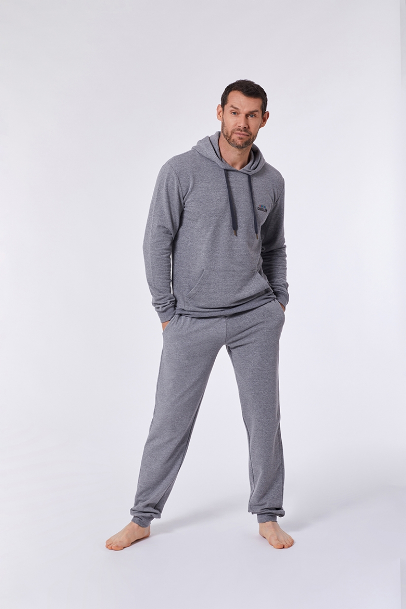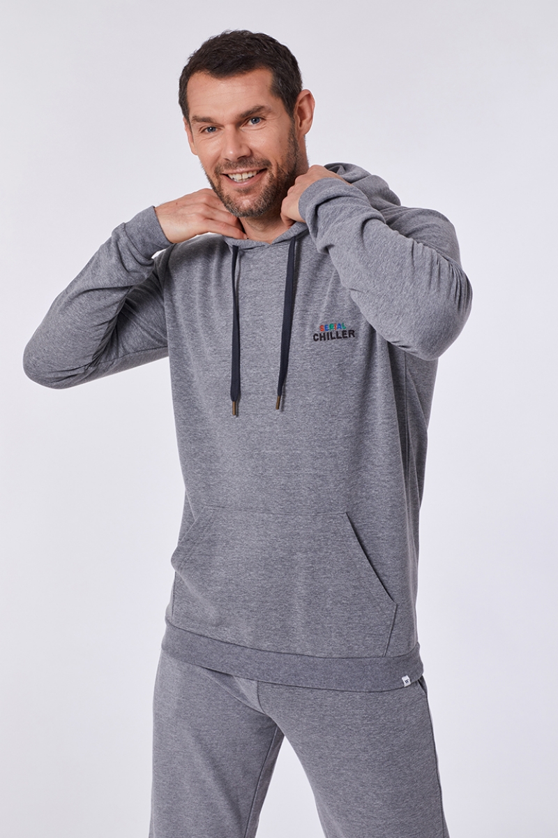- Kapüşonlu Sweatshirt-Qle - 125-Rakun Temalı Gri Melanj