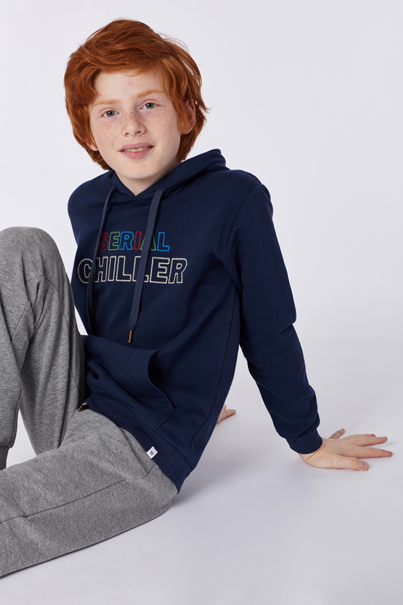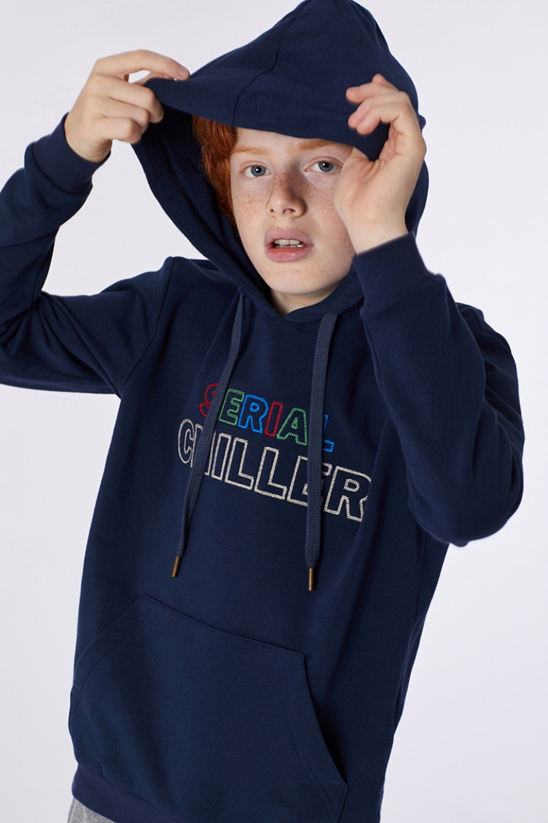 Kapüşonlu Sweatshirt-Qle - 885-Boğa Temalı Koyu Lacivert