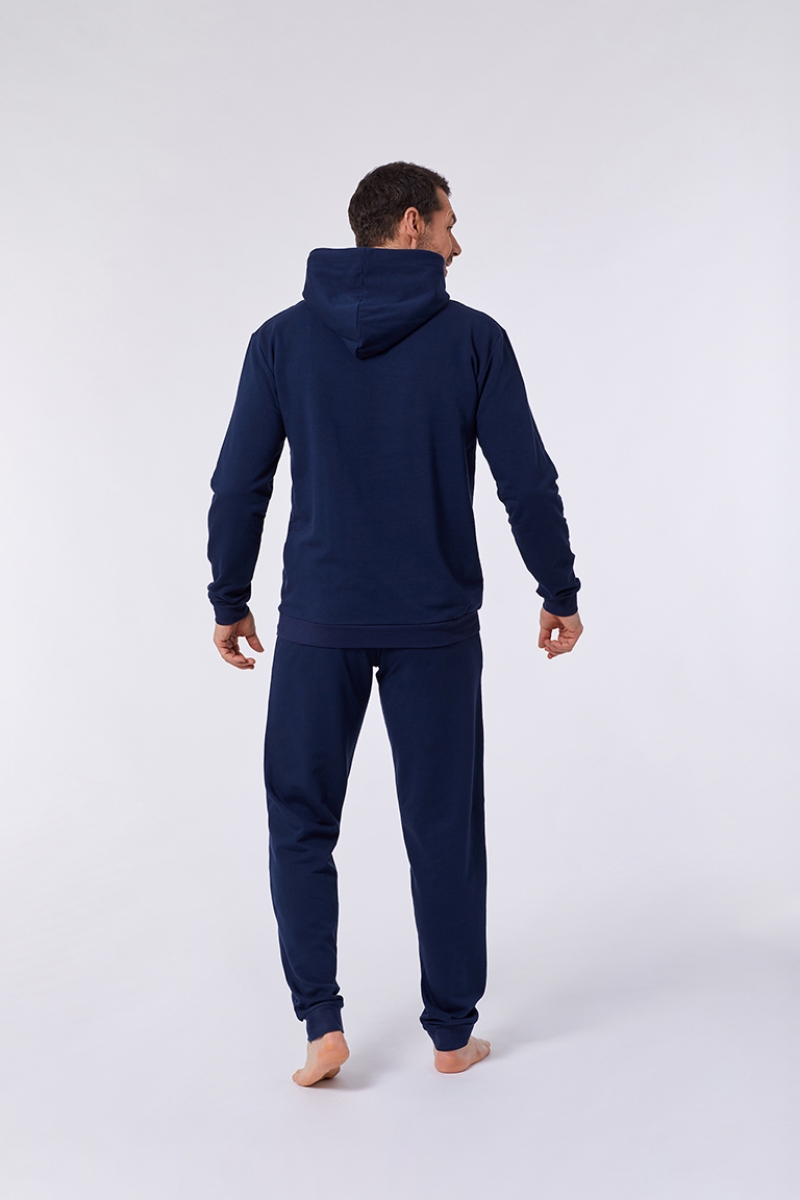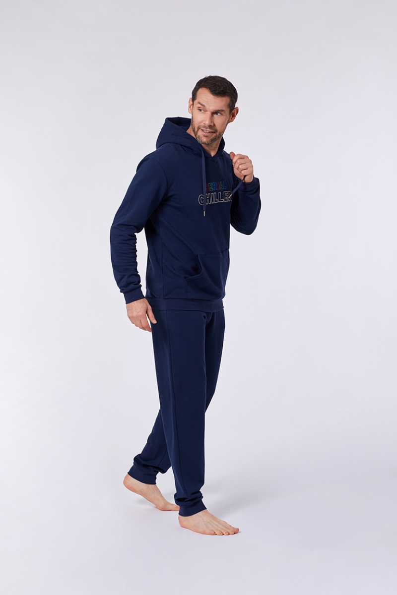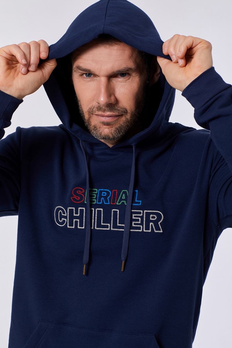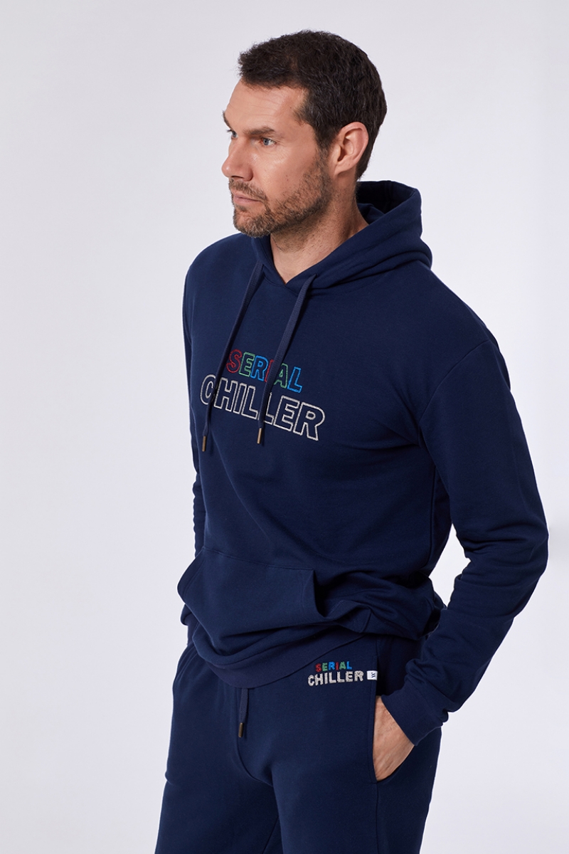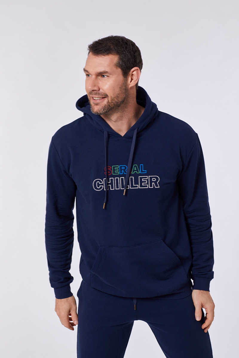 - Kapüşonlu Sweatshirt-Qle - 885-Boğa Temalı Koyu Lacivert