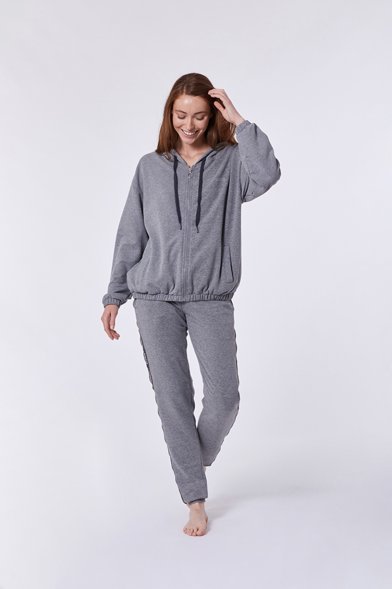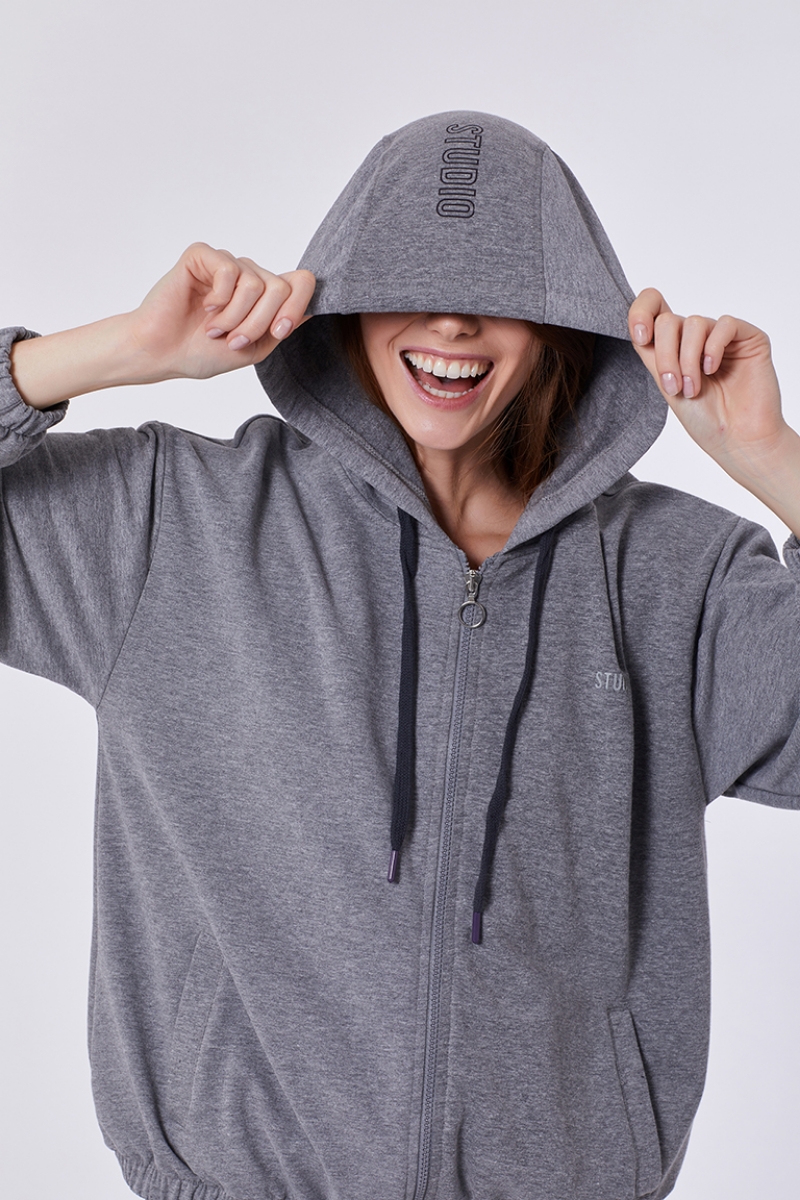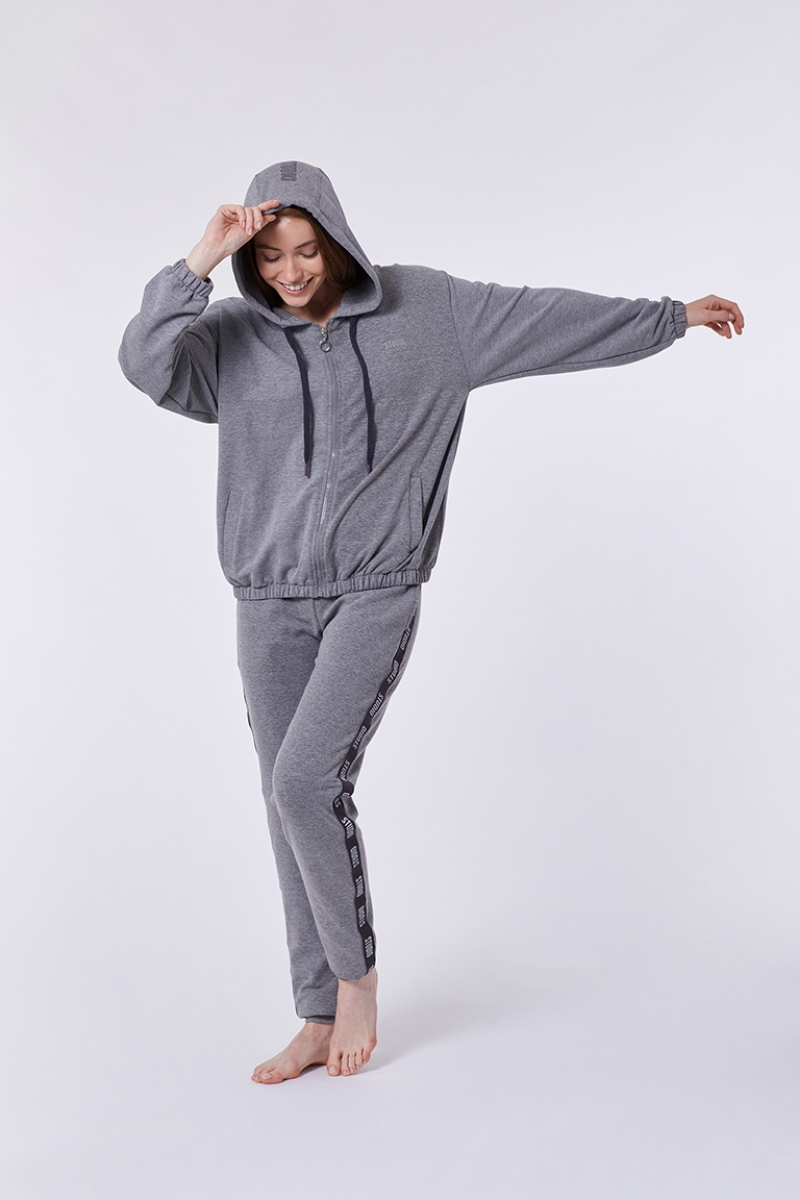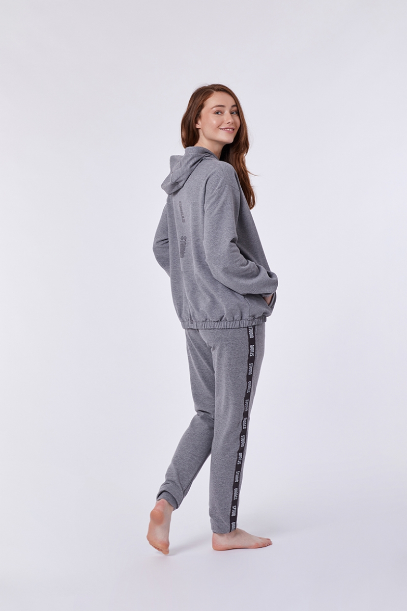 - Kapüşonlu Sweatshirt-Ylc - 125-Rakun Temalı Gri Melanj