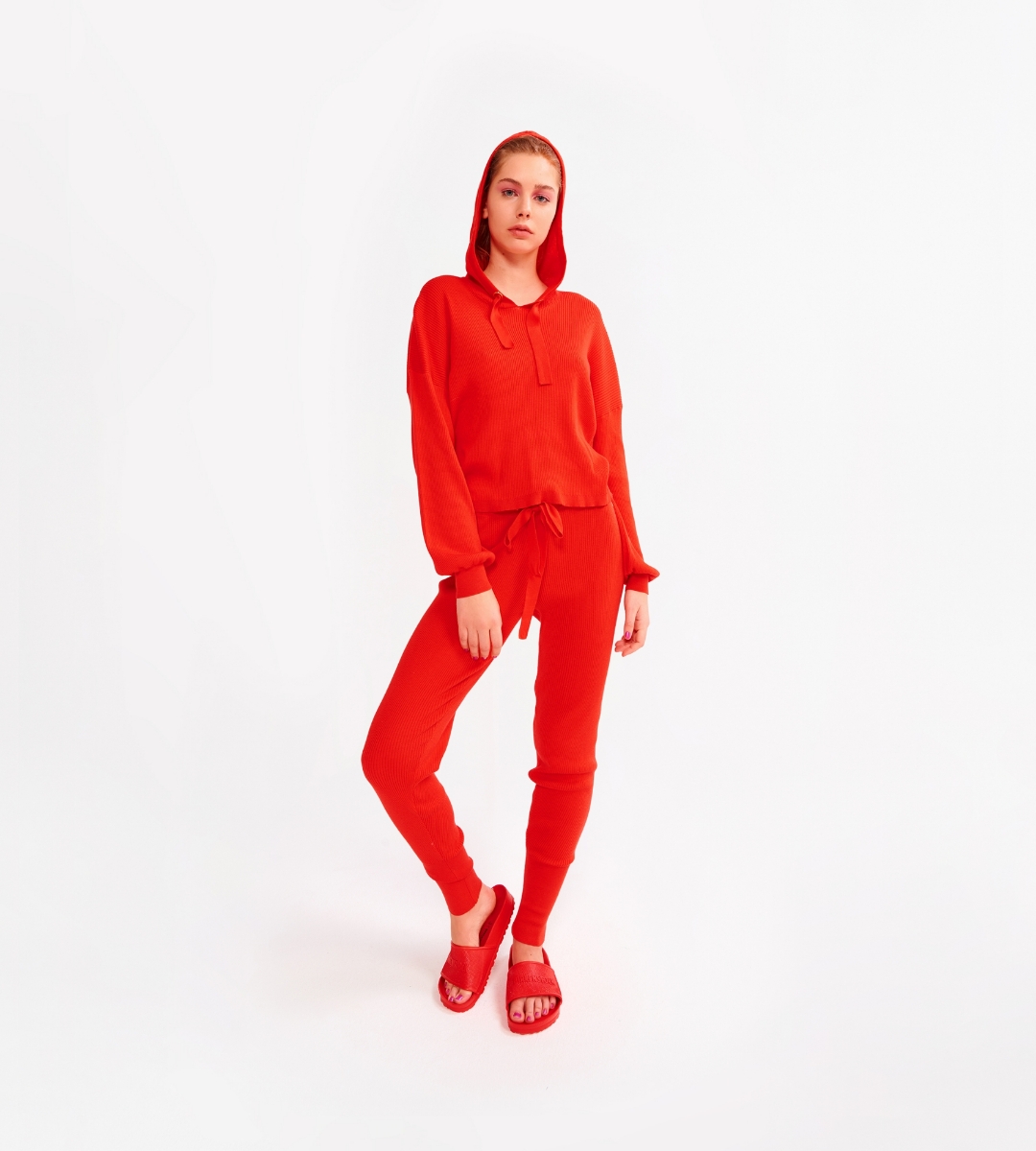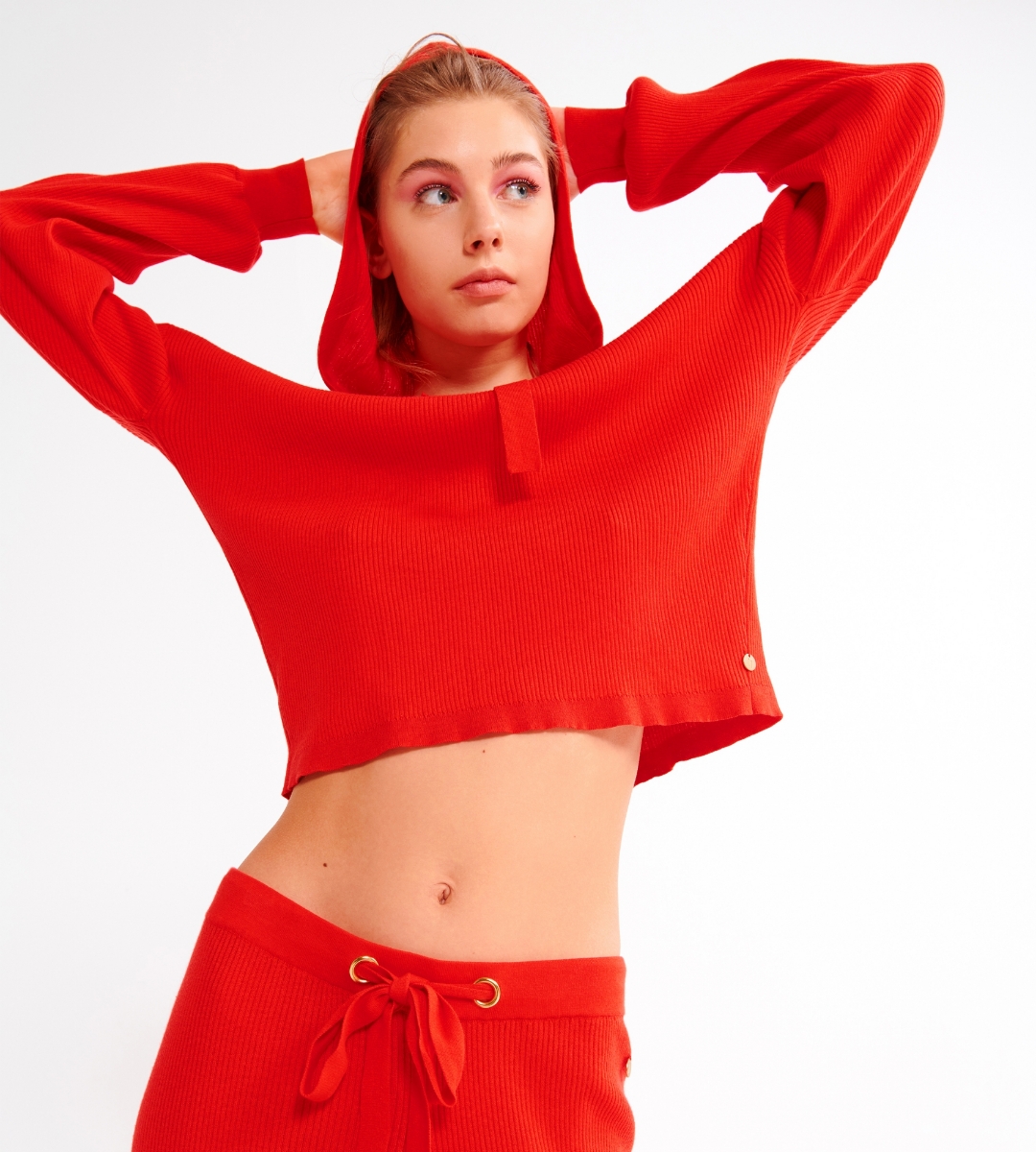 - Kapüşonlu triko kazak-Lhl - 433-Nar Çiçeği