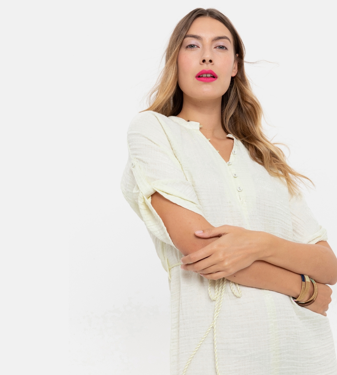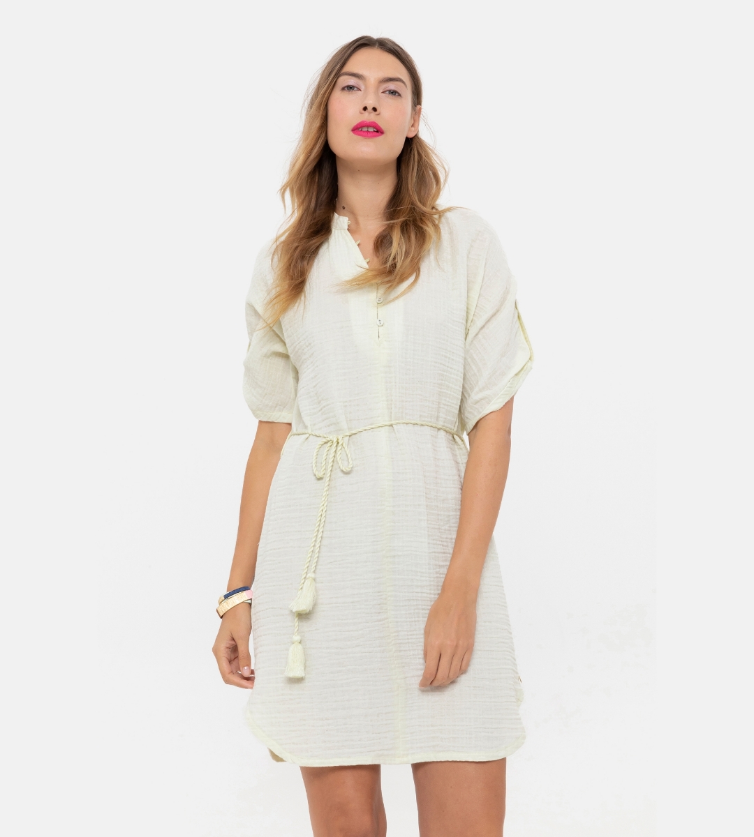 - Kuşak detaylı rahat kesim kısa elbise-Tdc - 701-Doğa Yeşili