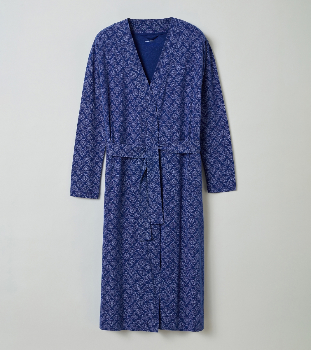 - Kuşak detaylı sabahlık-Lna - 966-Mavi Puantiyeli