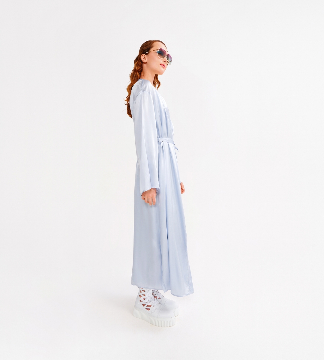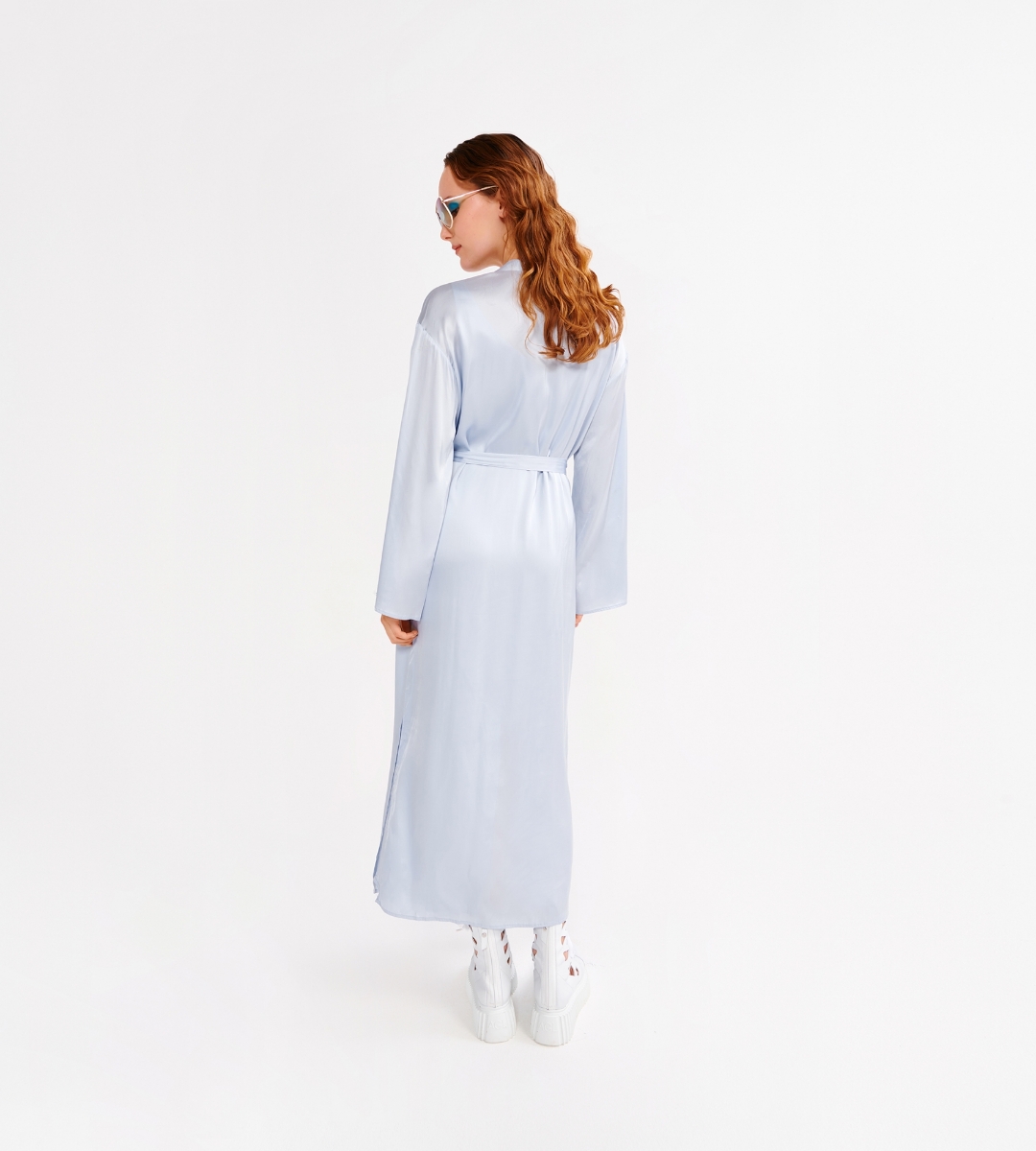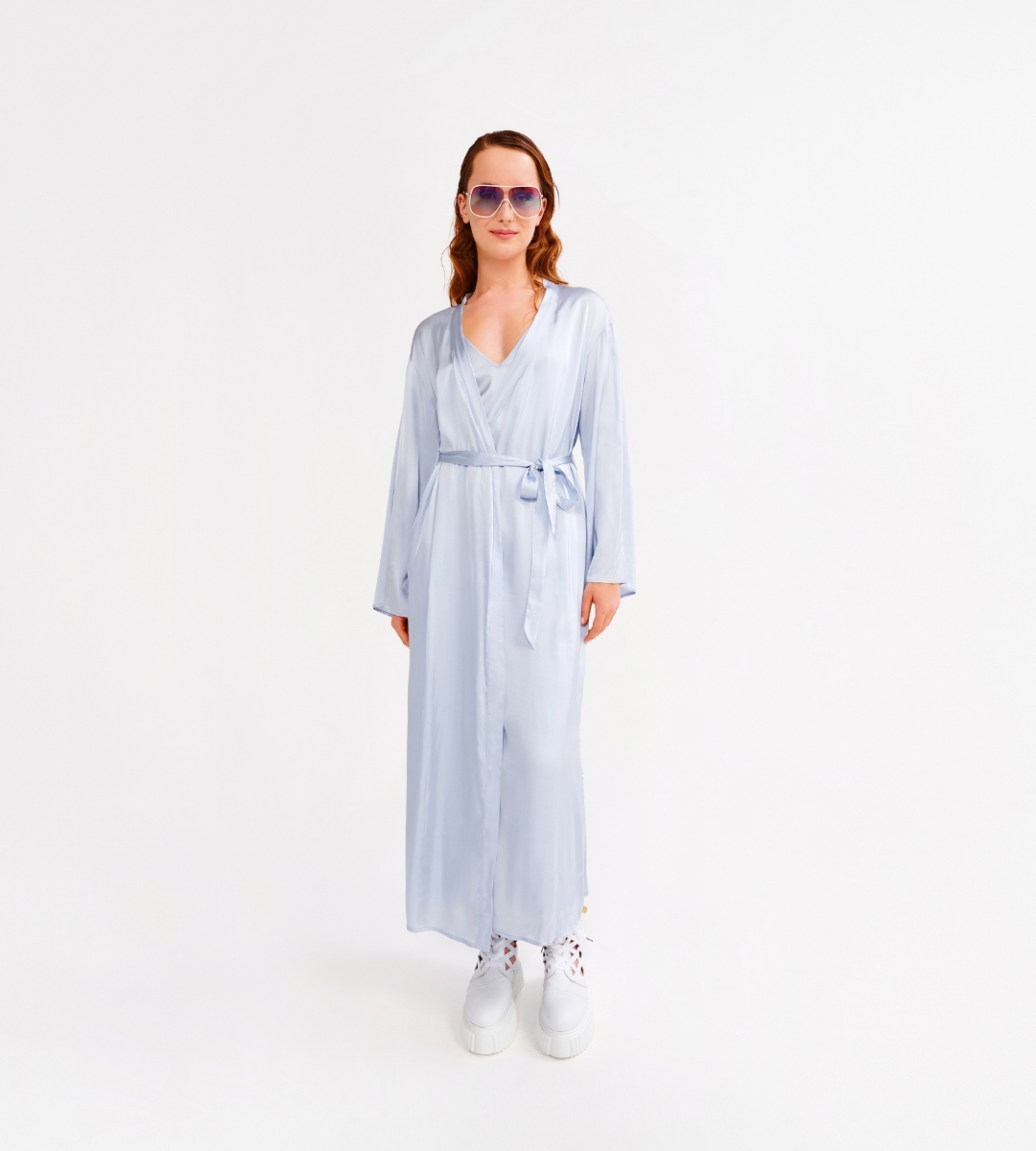 - Kuşak detaylı viskoz saten sabahlık-Lnd - 836-Lila