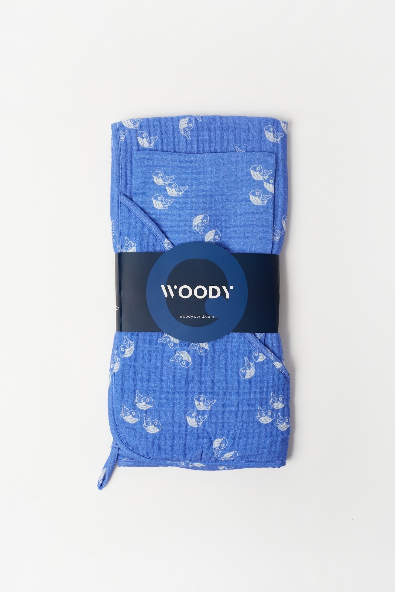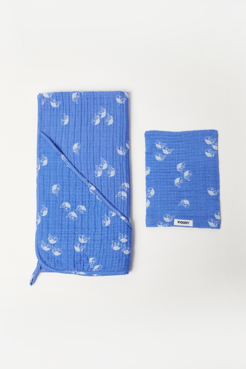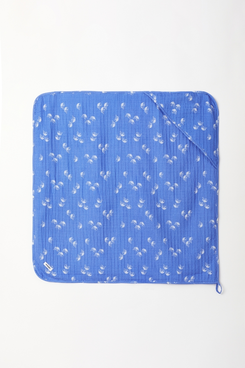 - Müslin Bebek Banyo Havlusu-Cap - 938-Balina Baskılı Mavi
