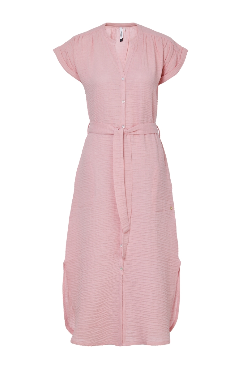 - Önden düğmeli rahat kesim elbise-Tda - 424-Şeker Pembe
