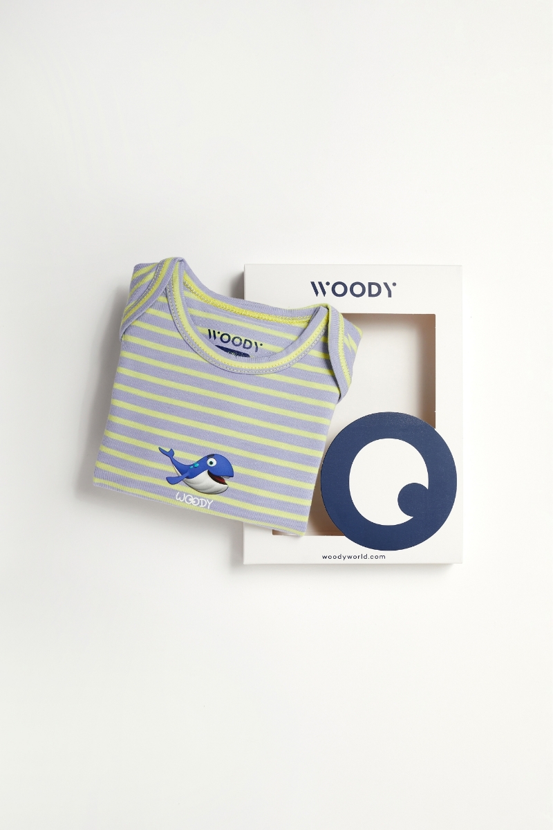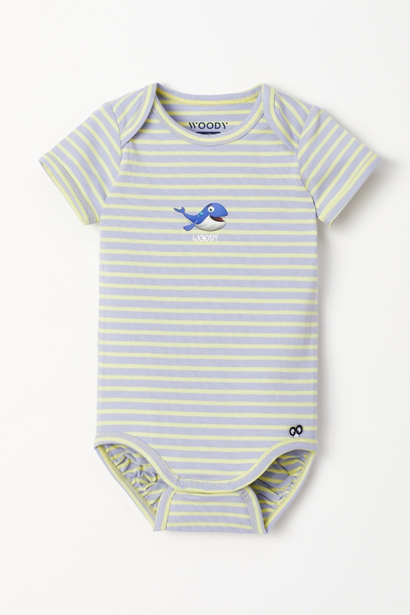 - Pamuklu Bebek Body-Res - 916-Balina Temalı Çizgili Mavi