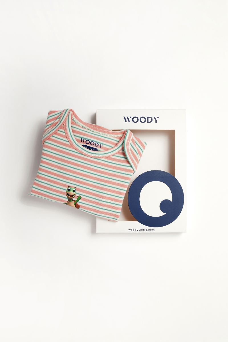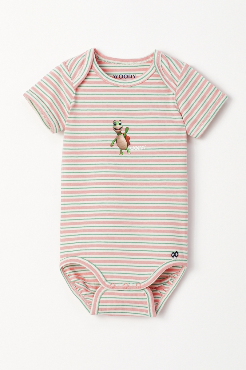 - Pamuklu Bebek Body-Res - 917-Kaplumbağa Temalı Çizgili Pembe