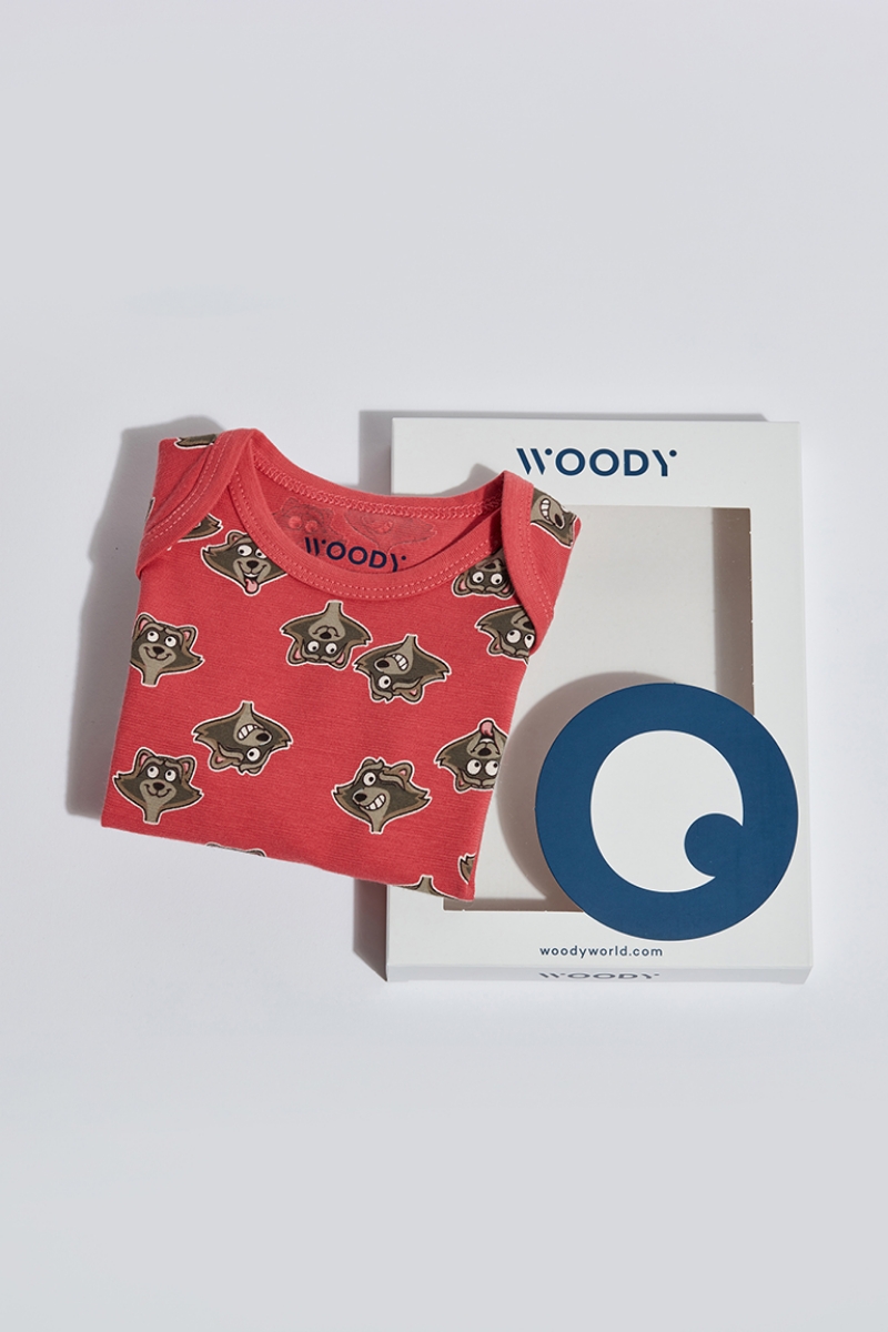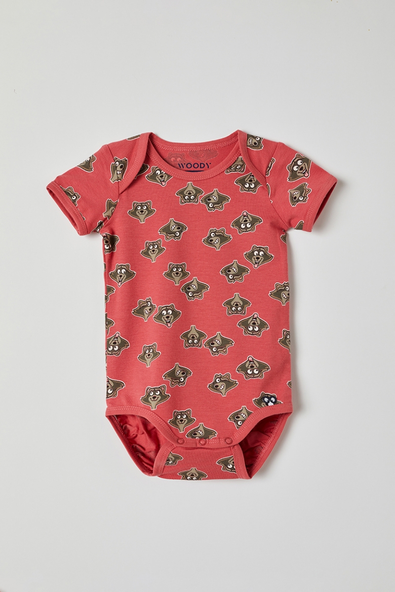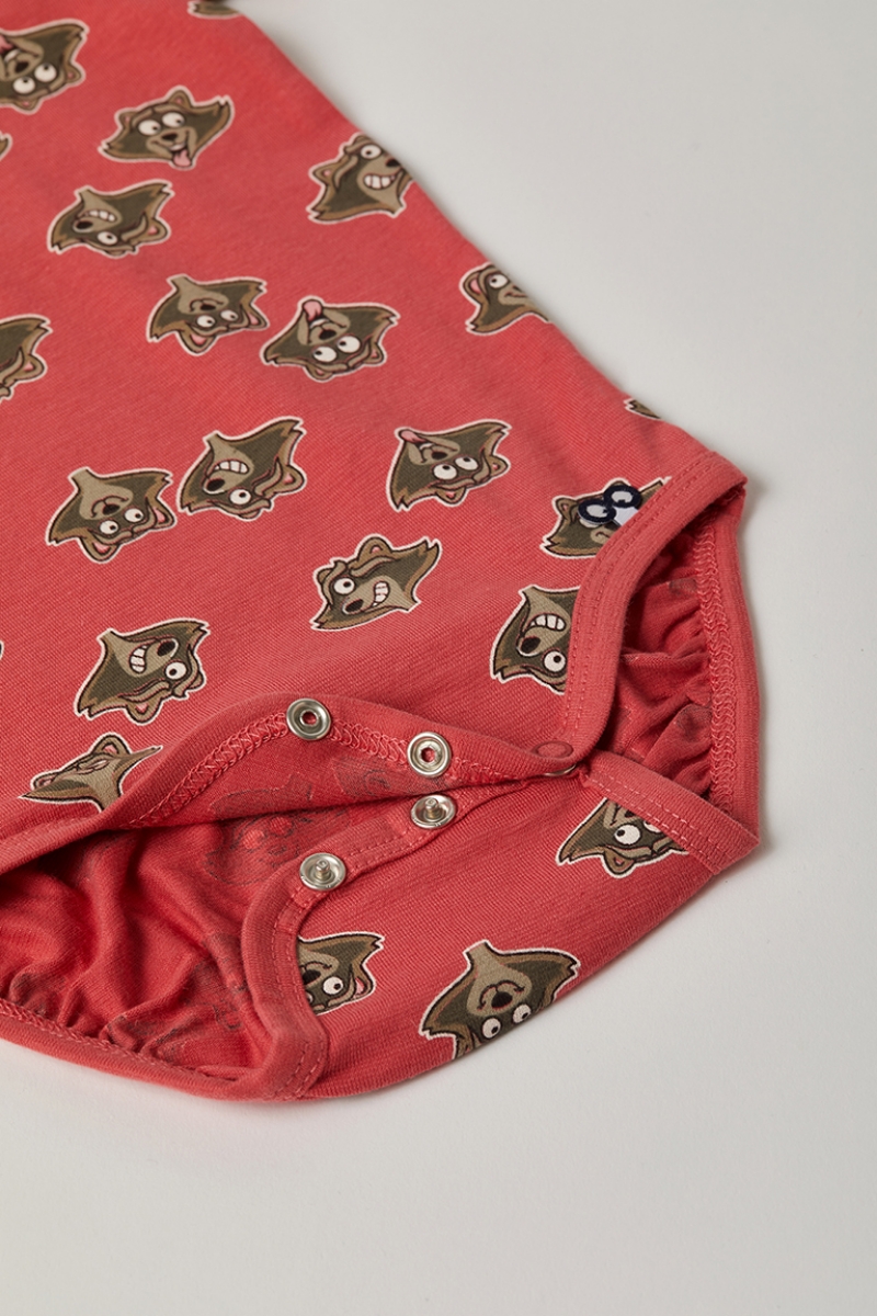 - Pamuklu Bebek Body-Res - 926-Rakun Baskılı Gül Kırmızısı