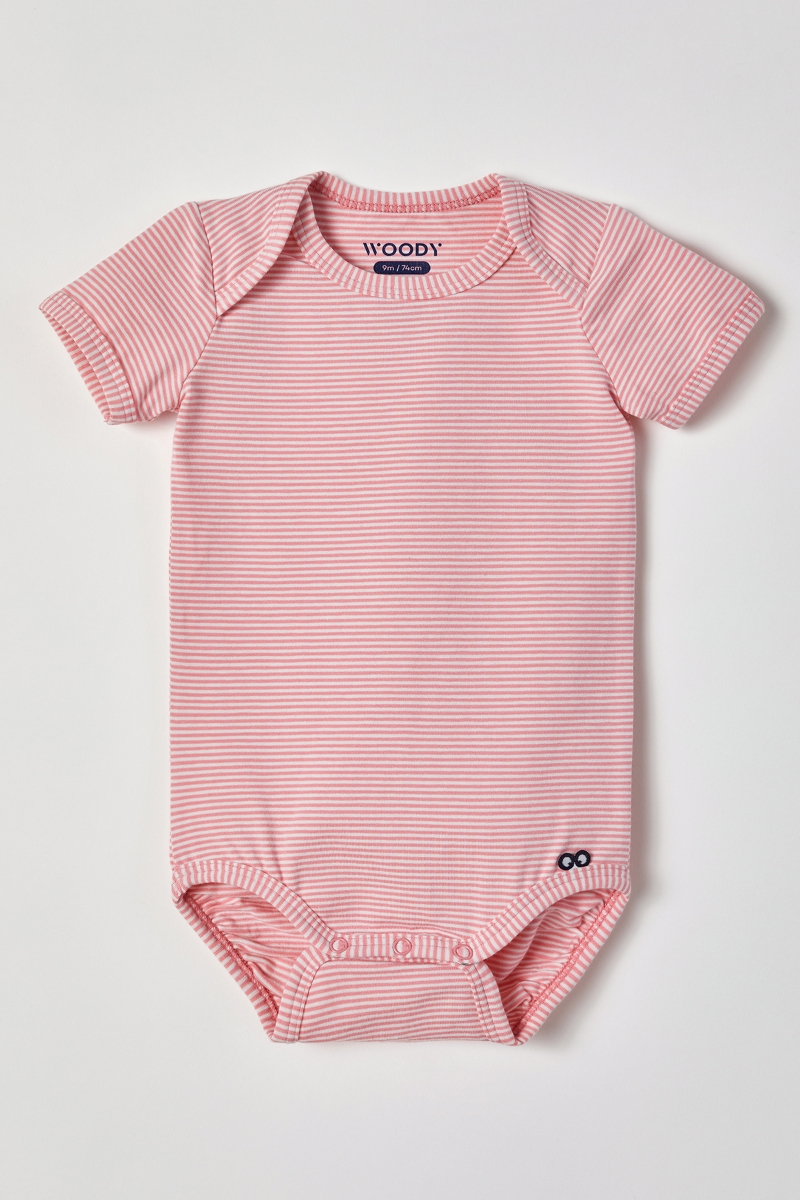 - Pamuklu Bebek Body-Res - 943-Semender Temalı Çizgili Pembe