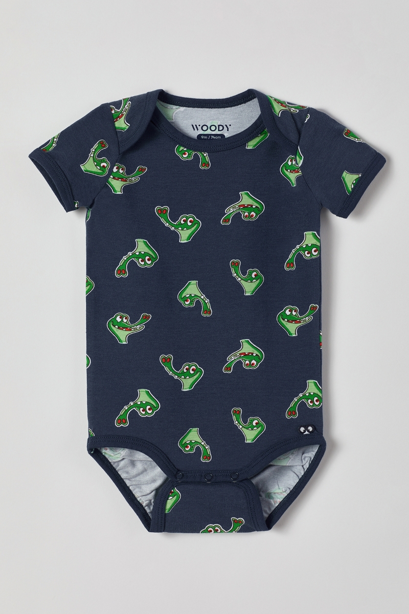 - Pamuklu Bebek Body-Res - 998-Krokodil Baskılı Lacivert
