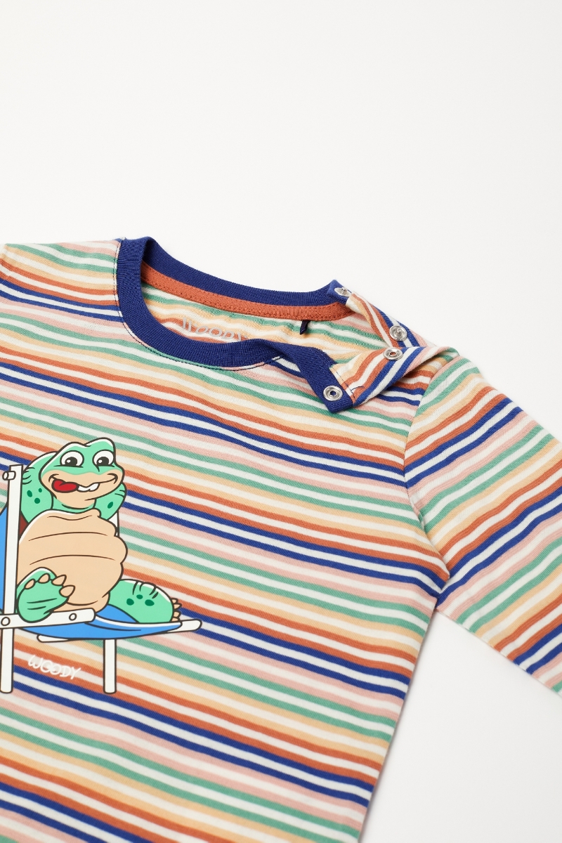 - Pamuklu Erkek Bebek Pijama-Plc - 906-Kaplumbağa Temalı Çizgili Turuncu